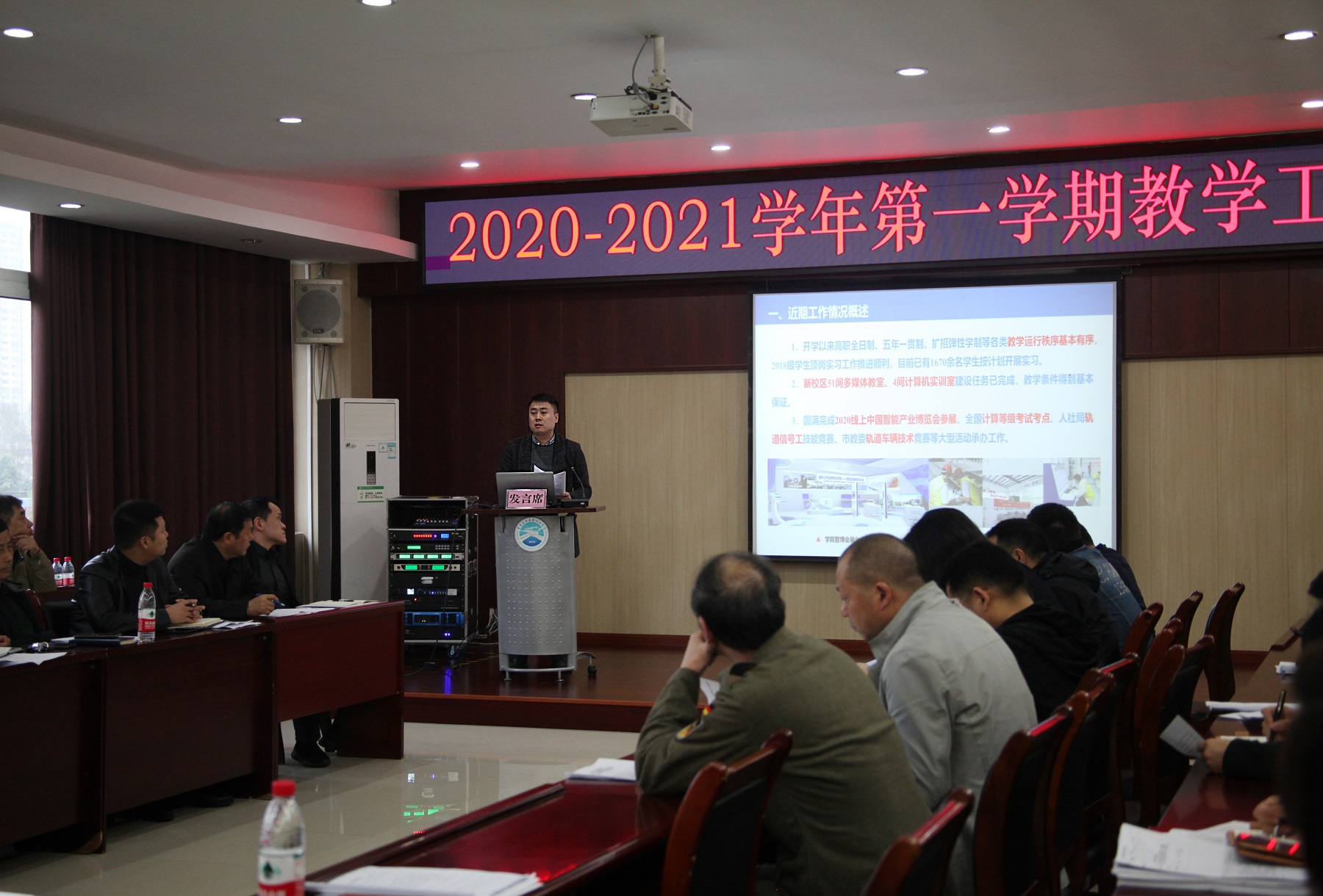 会上,学院教务处长陈兴劼通报了本学期开学以来教学工作情况,指出存在问题不足,对下一步重点工作任务进行布置,轨道车辆与机械系副主任蒋晶、轨道电气系副主任牟刚、运输贸易系副主任龙讯、汽车工程系副主任袁可夫、铁道与建筑工程系唐晓松教授、人文艺术系主任黄江、思政教研部部长张渝政,围绕本学期教学重点工作思路举措交流发言。