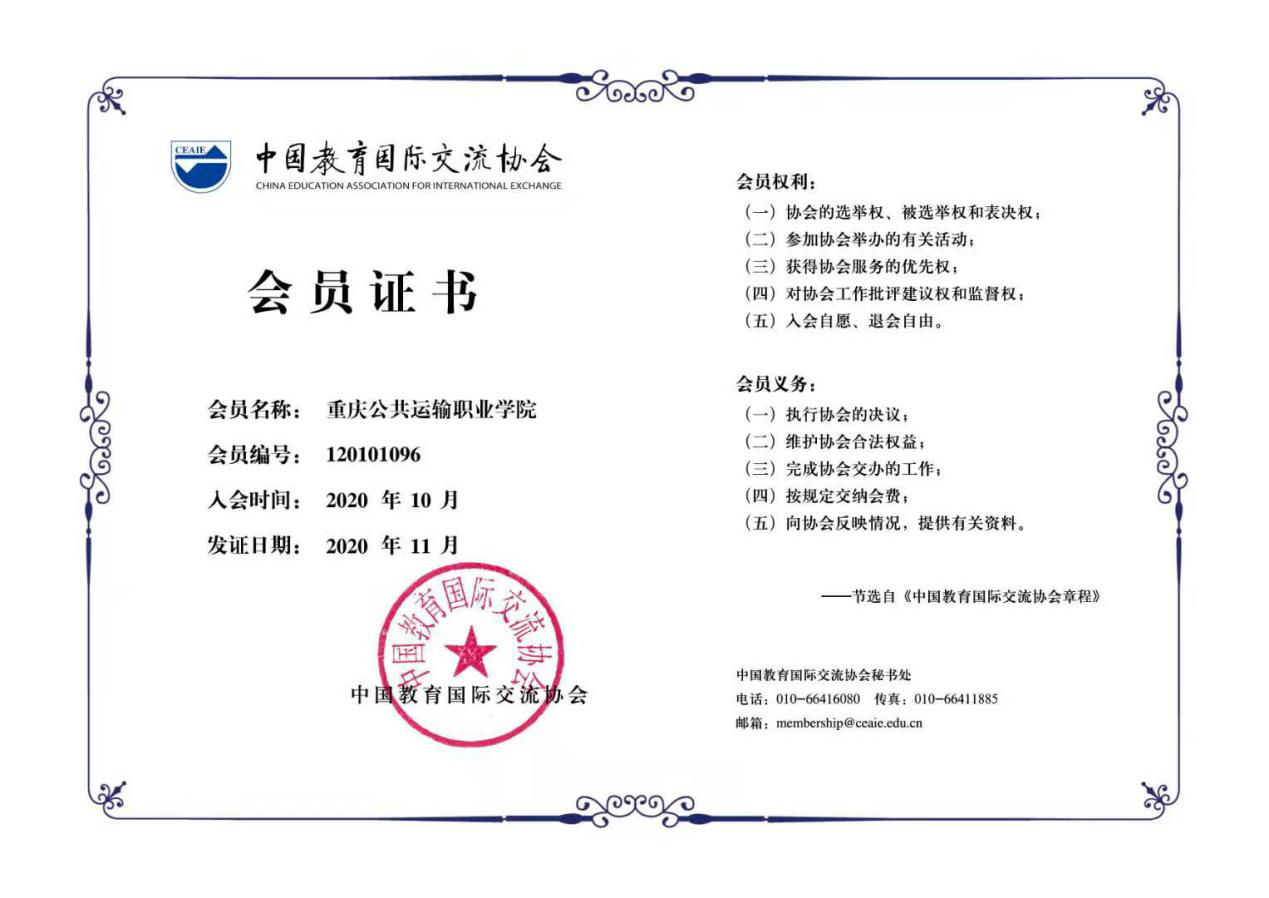 11月21日,中国教育国际交流协会发出专门通知,正式批准重庆交通开投集团所属澳门正规电子游戏平台加入协会,学校的国际合作与交流工作再上一个新台阶。
