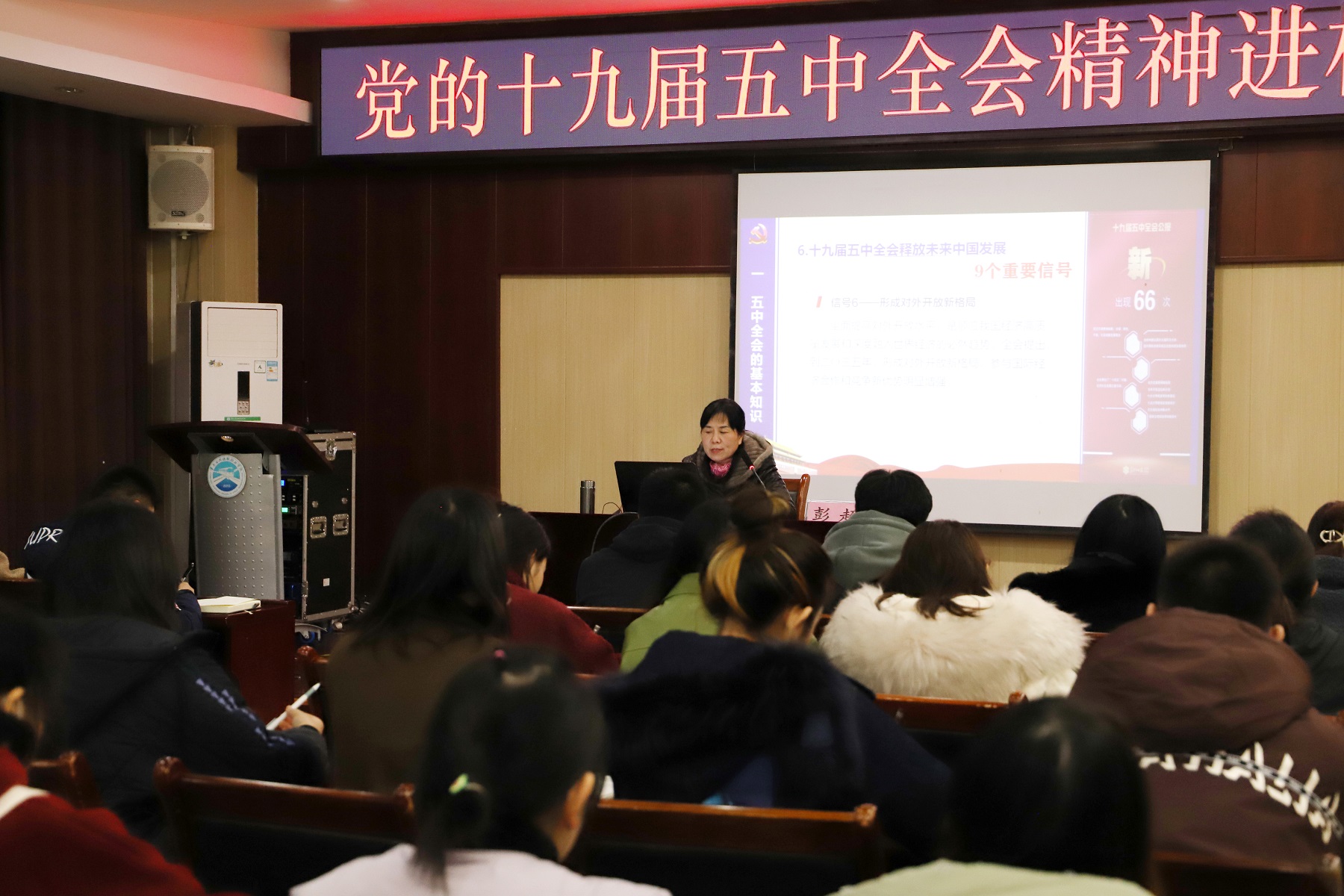 彭超在宣讲结束时强调,全校上下要深入学习贯彻落实党的十九届五中全会精神,准确把握十四个五年规划和二〇三五年远景目标的主要目标和重点任务,把思想和行动统一到全会精神上来,把智慧和力量集中到落实全会确立的各项目标任务上来。要协同推进党的十九届五中全会精神进教材、进课堂、进师生头脑,开展多形式、全覆盖的学习交流活动,融会贯通、细研深悟,不断增强学习实效,用学习成果推动教育教学工作顺利开展,把学习贯彻全会精神与认真落实新发展理念结合起来,以一流工作业绩推动学校高质量发展。