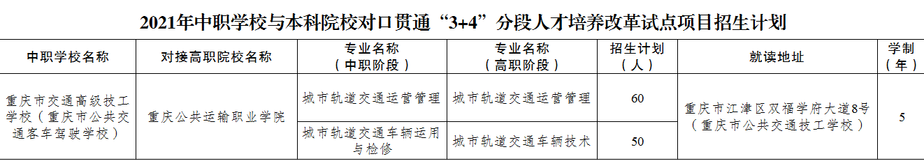 近日,重庆市教委下达2021年“3+4”和“五年制”人才培养改革试点项目招生计划,重庆交通开投集团所属重庆市交通高级技工学校(重庆市公共交通客车驾驶学校)榜上有名,两个专业获批试点项目,将招收110名市内应届初中毕业生进行进行“五年制”高等职业教育人才一体化培养。