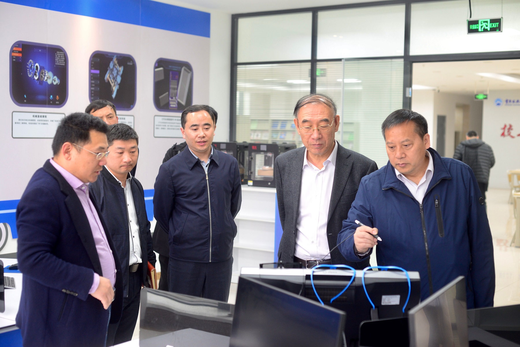刘东燕(右一)陪同校企合作单位领导考察虚拟仿真实训中心(库国静摄)