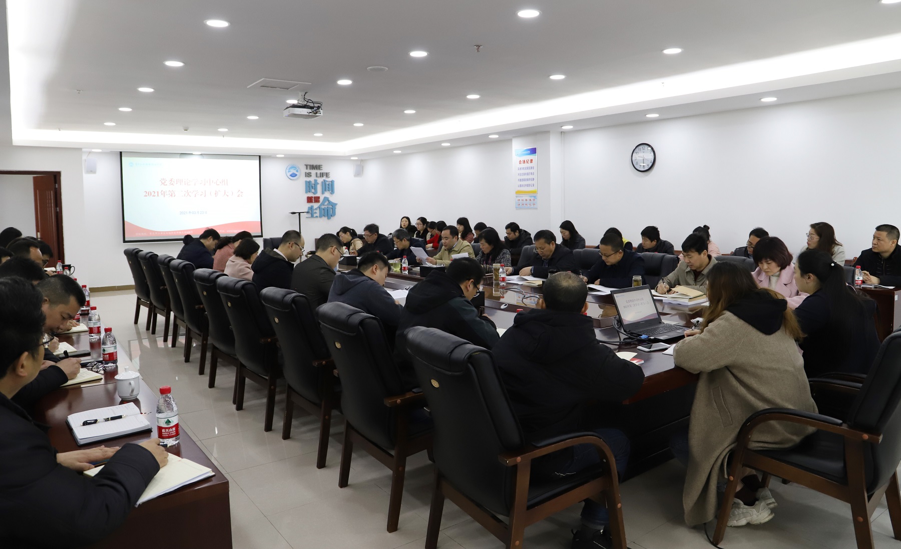 学校领导班子成员,各党总支、直属党支部书记,专职副书记,各部门、各单位负责人,共40多人参加会议。