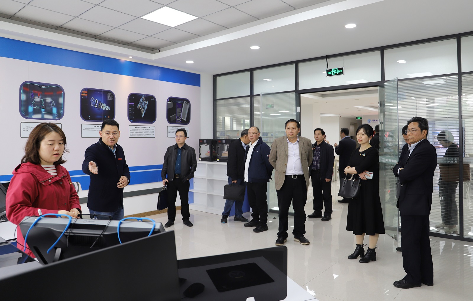 在校期间,市教委相关处室负责人和专家组成员到学校全国高铁与城轨技术共享实训基地、AR/VR虚拟仿真实训室,实地考察优质校建设相关硬件设施建设情况。