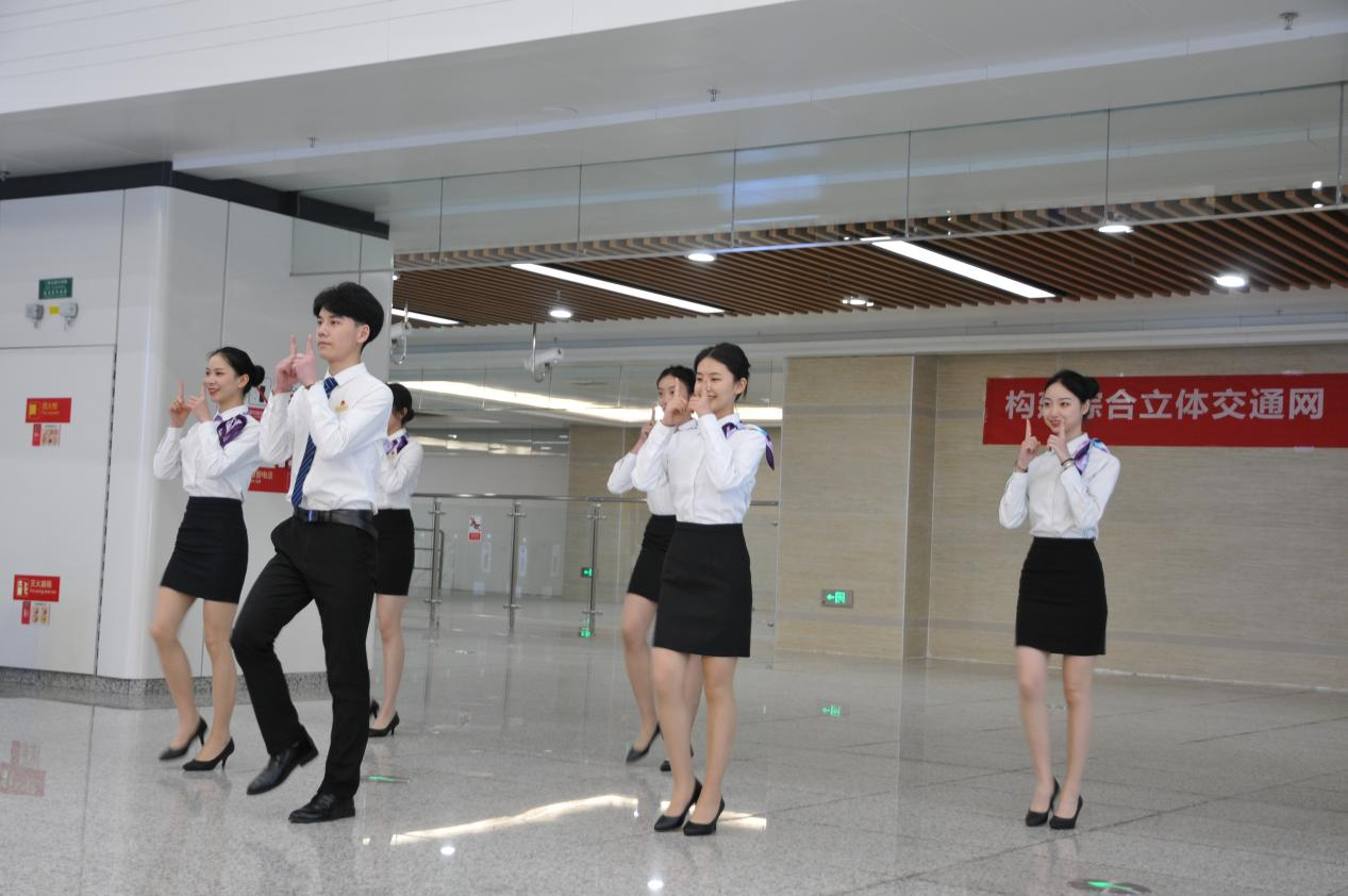 百人宣讲团成员代表还在重庆轨道环线重庆西站现场展示由学校编创的轨道交通礼仪操,赢得广大旅客、企业青年员工阵阵掌声。