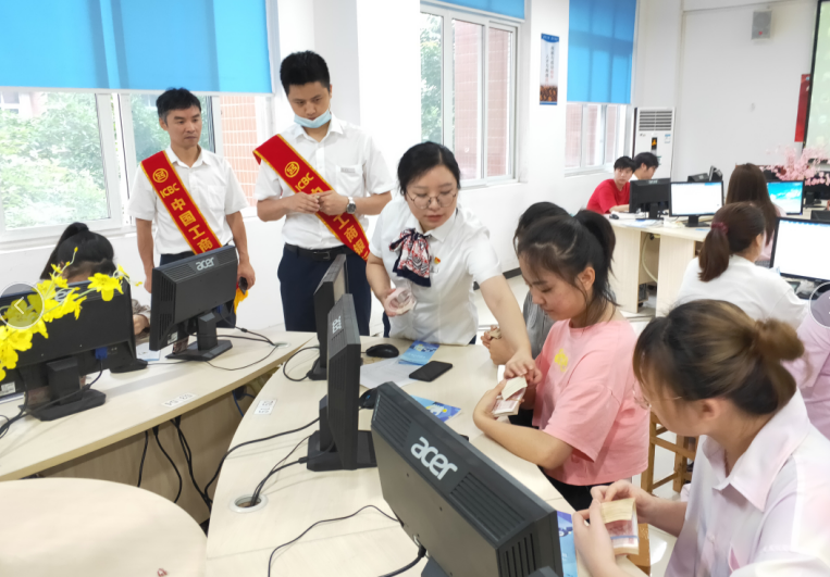 活动中,学院邀请到中国工商银行双福支行工作人员,围绕反金融诈骗、金融工作如何更好服务群众等内容进行宣讲,通过工作人员现场演示会计点钞、验钞工作流程,帮助同学们进一步了解、掌握财务会计工作中的各项业务能力。