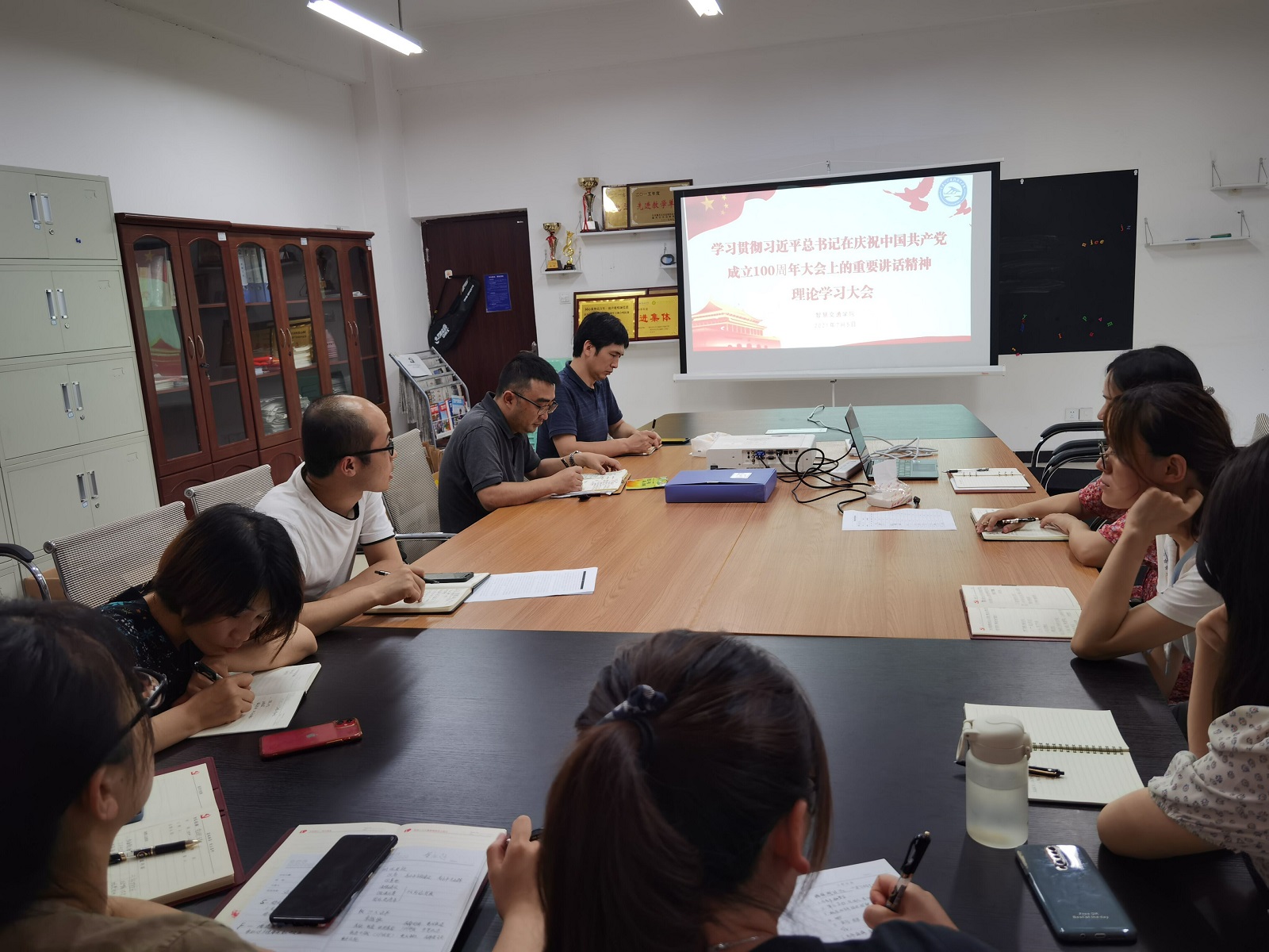 在研讨交流环节,教职工代表分享观看庆祝中国共产党成立100周年大会感受和学习习近平总书记在庆祝中国共产党成立100周年大会上的重要讲话心得。