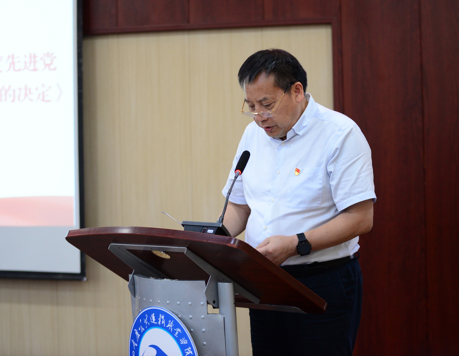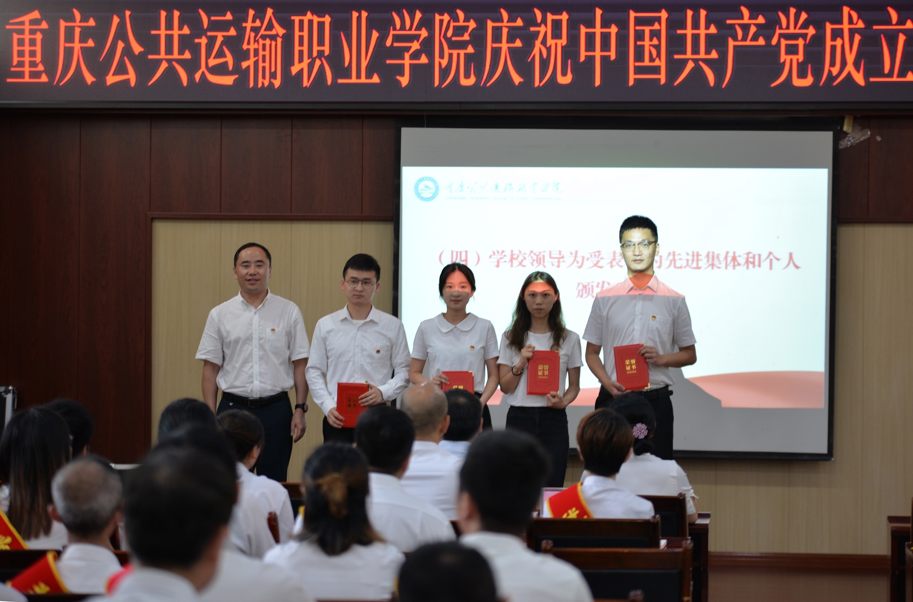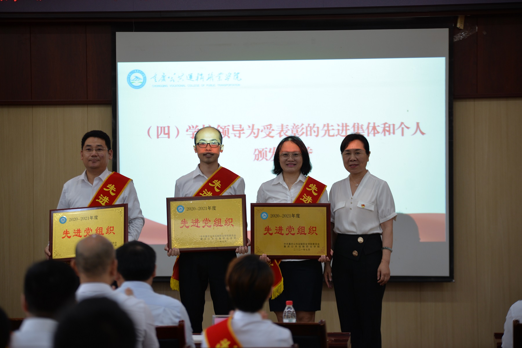 根据通报,学校决定对智慧交通学院党总支、机关一党支部、中职教学党支部等学校“先进基层党组织”,彭文华、张秦豫、卢延飞、黄刚、陈香等26名学校“优秀共产党员”,古曼筝、刘冰、牛禧、冯倩、钟恒等5名学校“优秀党务工作者”,教务处、学生处、招生就业处、运输贸易学院、智慧交通学院等5个学校2020年新闻宣传工作先进单位,库国静、郭希诚、任杰、胥雅洁、王曾等6名学校2020年新闻宣传工作先进个人进行表彰,由学校党委副书记李灿、副校长刘畅等学校领导为受表彰的集体与个人代表颁奖。
