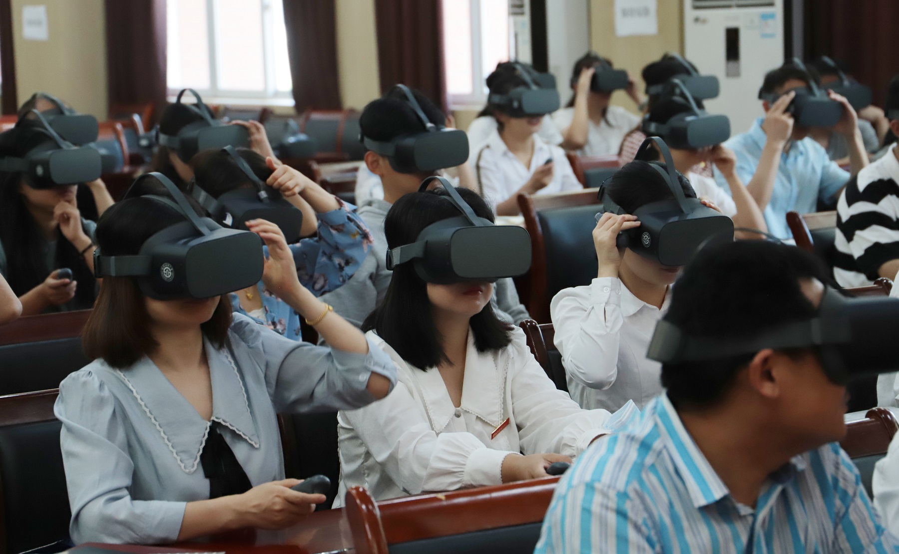 活动过程中,通过组织参加活动的教师代表在“5G+VR”技术打造的虚拟场景中自主学习,回望党史百年,感受于无声处听惊雷、一叶红船开启波澜壮丽新征程的历史画卷,体验“红军长征”浴血奋战、为有牺牲多壮志、敢教日月换新天的英雄豪迈,引导大家立足本职岗位,“赓续百年初心,担当育人使命”。