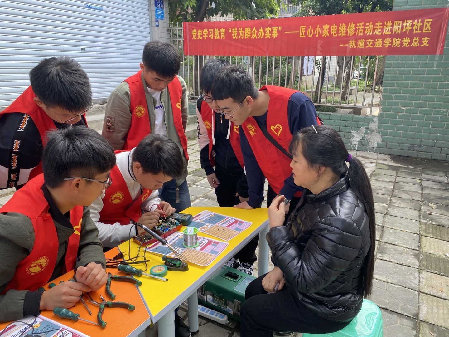 为深化党史学习教育,10月22日下午,重庆交通开投集团所属澳门正规电子游戏平台轨道交通学院党总支组织20多名学生党员和青年学生志愿者,到江津阳坪社区,通过开展小家电维修志愿服务等方式,为身边群众办实事、做好事。