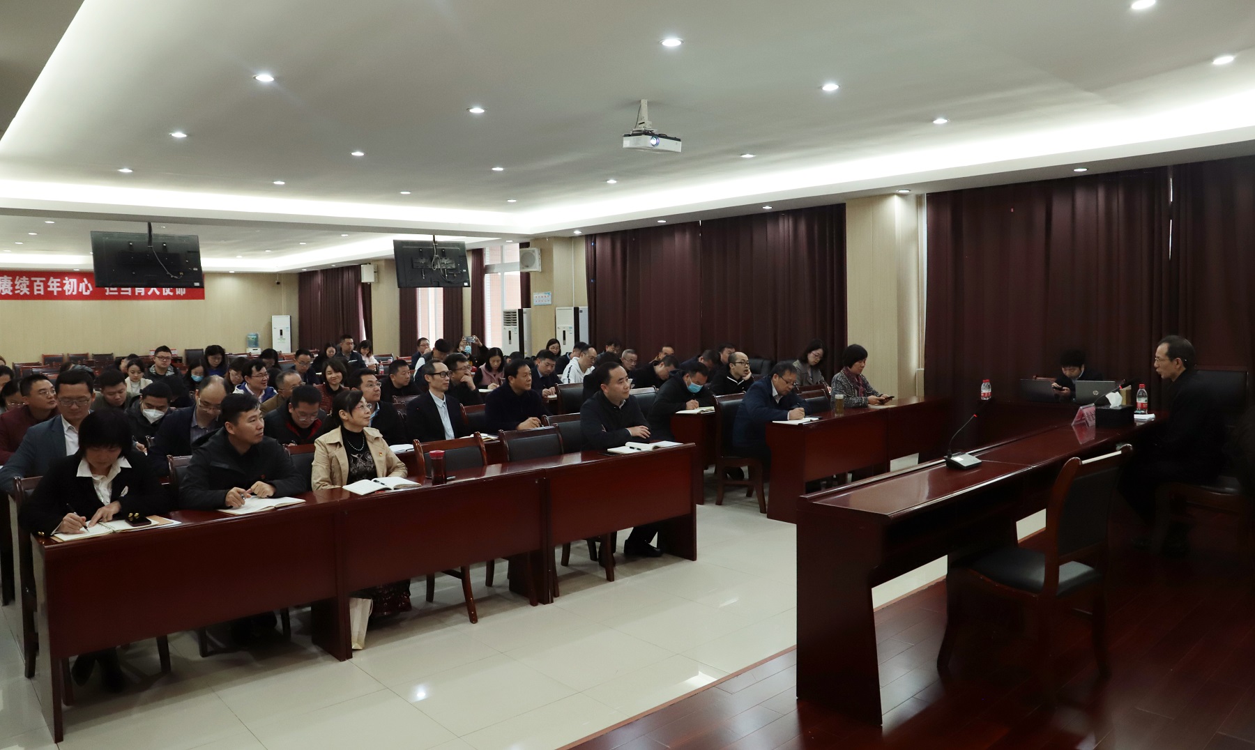 校长刘东燕、党委副书记李灿等学校领导班子成员,各单位、各部门党政负责人,学校党务工作培训班全体学员,共100多人到场聆听。报告会由学校党委书记彭超主持。