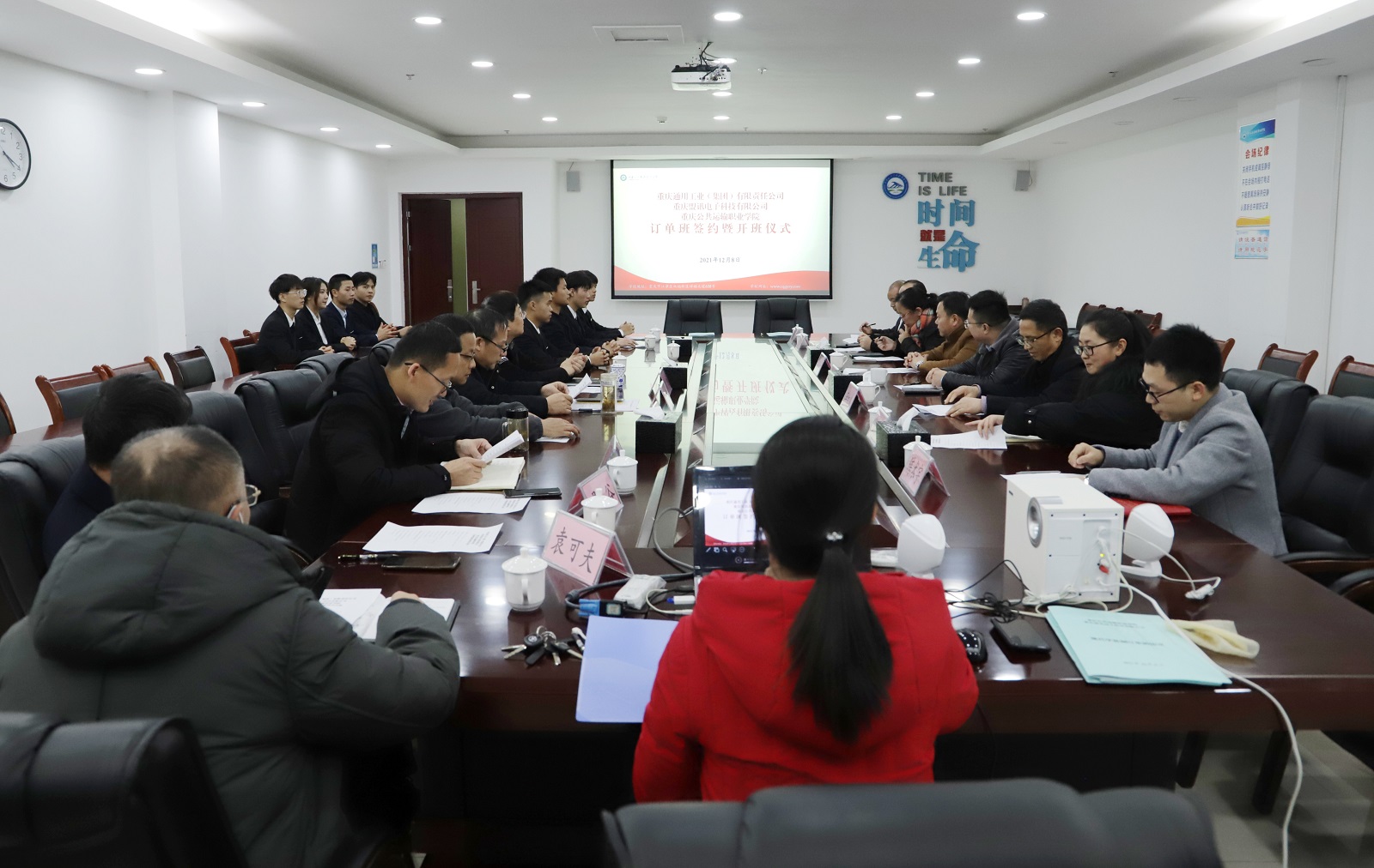 为深化校企协同育人成效,12月8日下午,重庆交通开投集团所属澳门正规电子游戏平台在科学城主校区办公楼507室举行专门仪式,启动与重庆通用工业(集团)有限责任公司、重庆盟讯电子科技有限公司共建“现代学徒制”订单班工作。
