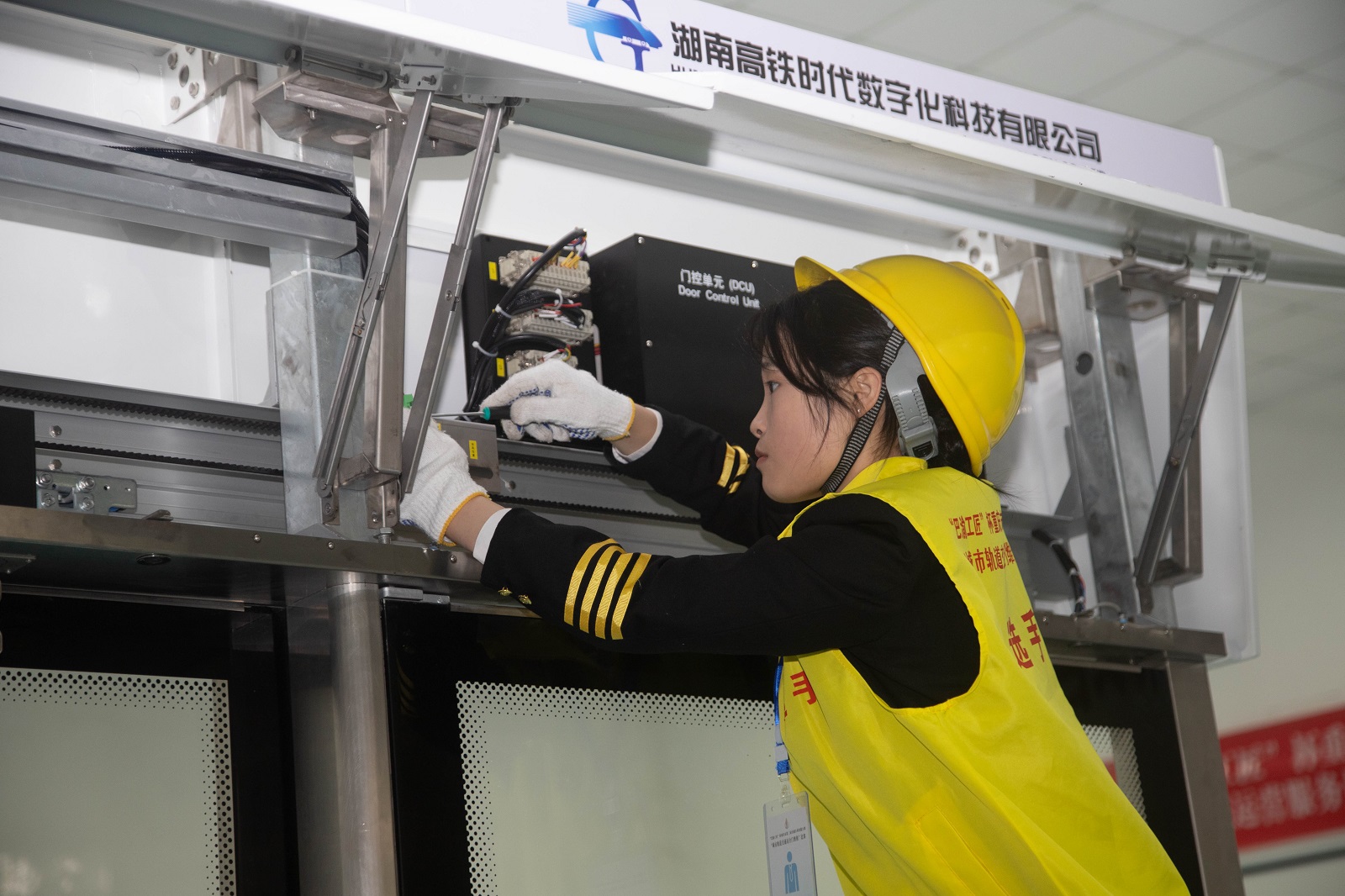 据介绍,站台门维修赛项涵盖站台门系统的控制电路配线、电气故障分析与排除、机械故障分析与排除等三个板块,重点考查参赛选手图纸识读、工具使用、安装工艺、设备检修、维护保养、故障排查等专业能力。