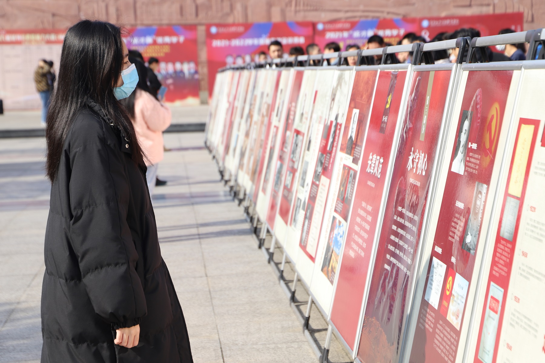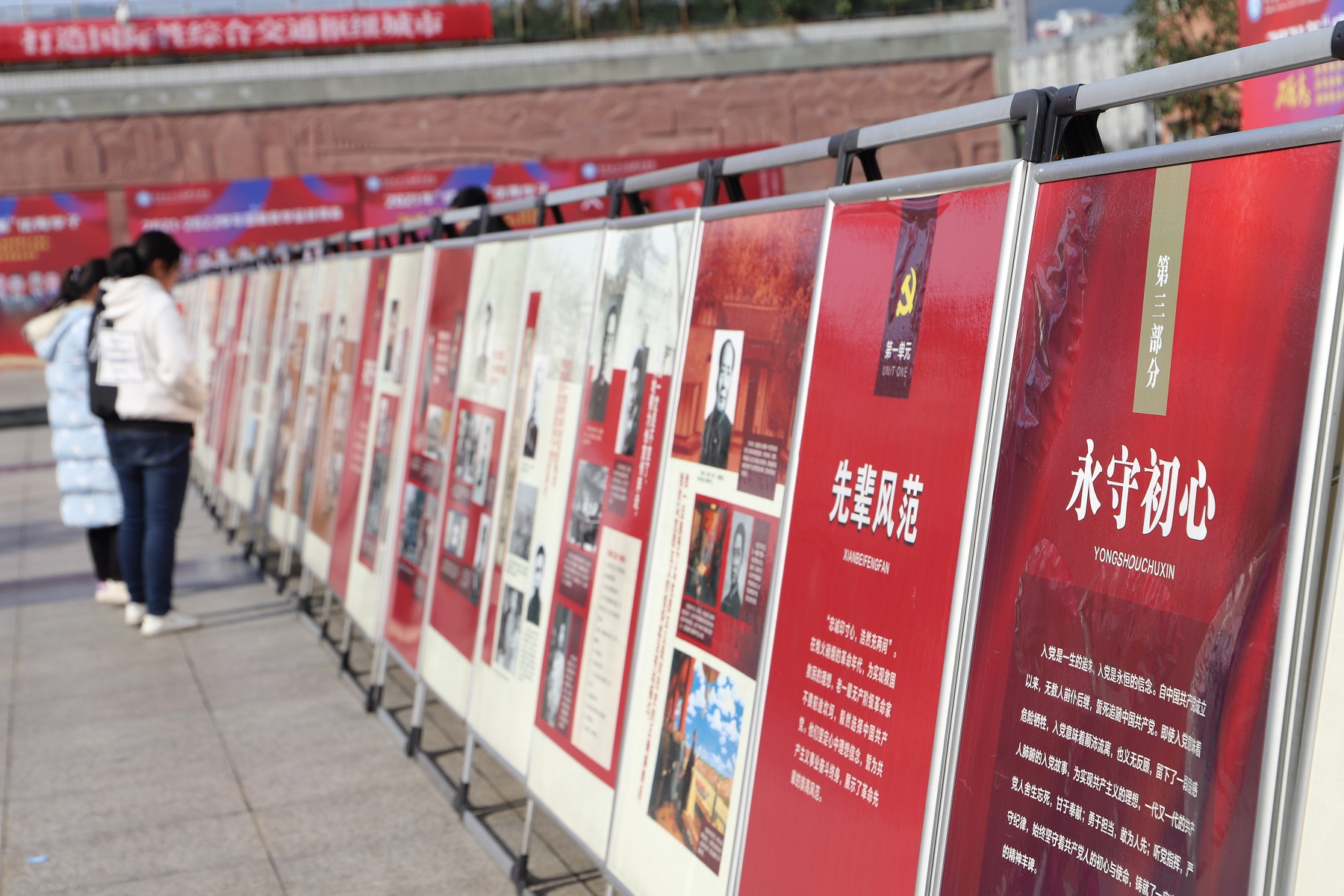展览围绕“百年回望·红心向党”主题,以图文展板展示+现场解说的形式,回望共产党百年奋斗历程,激发爱党爱国情怀。