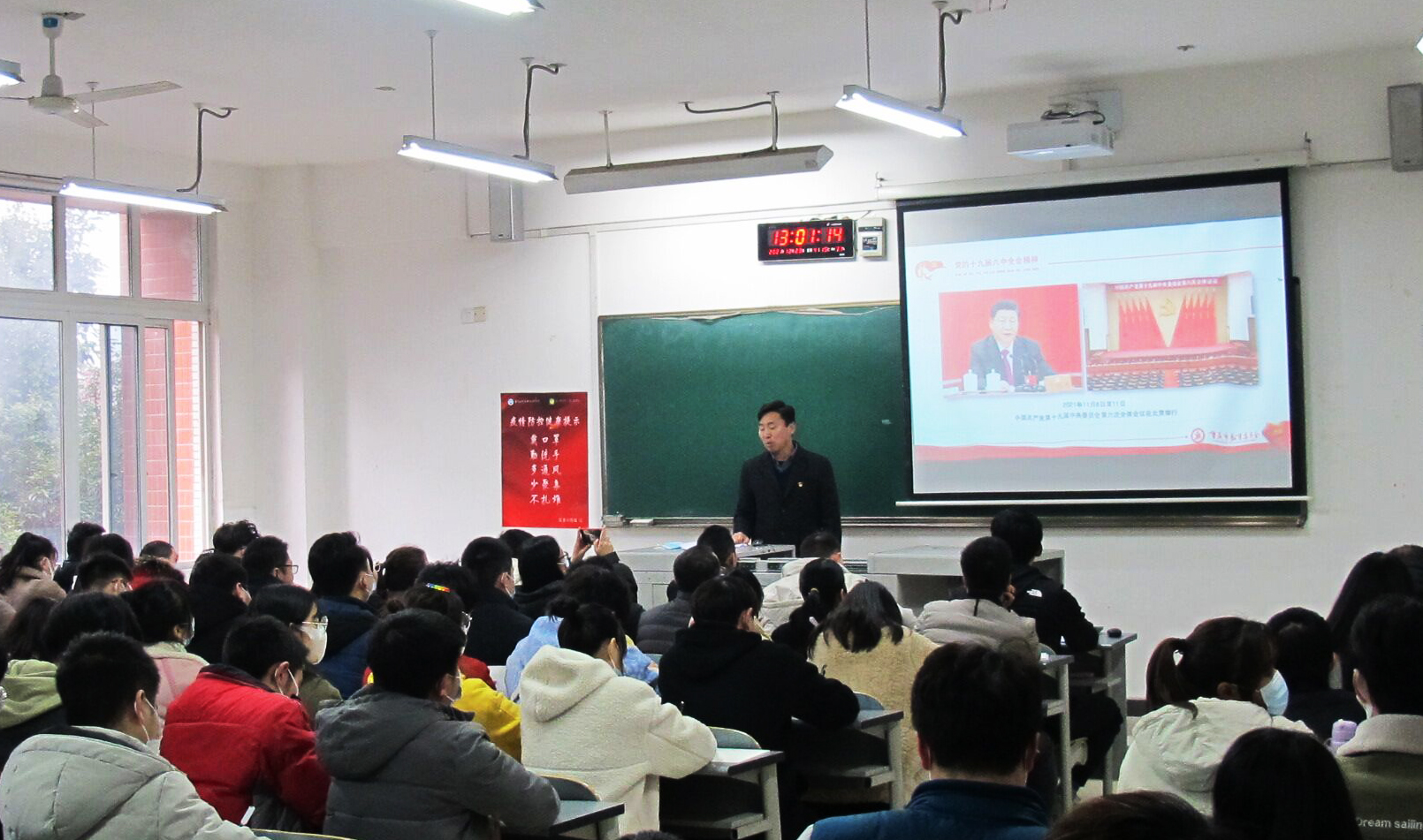 根据工作安排,12月23日中午,学校党委委员、副校长唐春林同志到主校区教学楼B栋307教室,为轨道交通学院师生宣讲党的十九届六中全会精神。