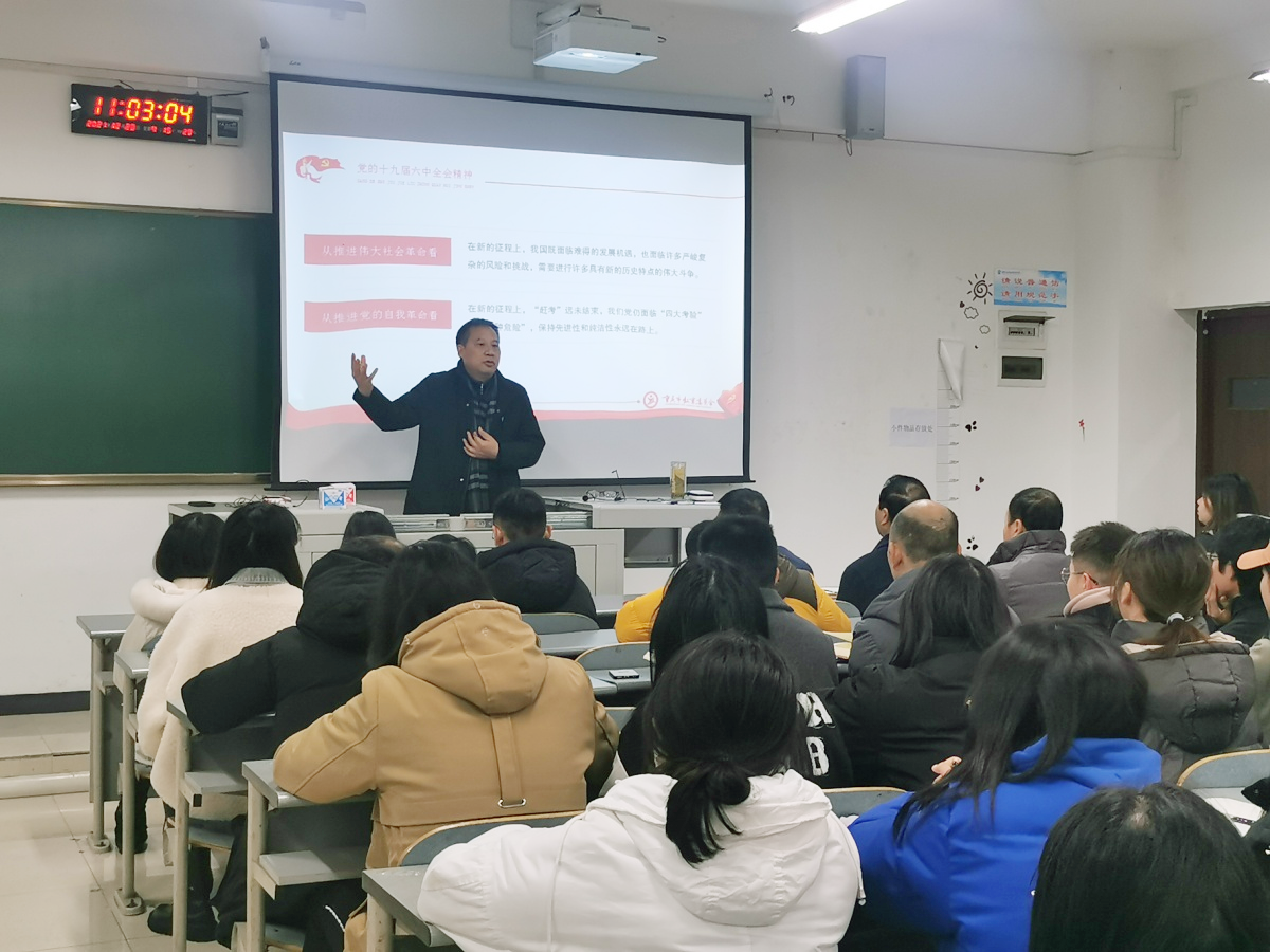 刘东燕在宣讲过程中强调,党的十九届六中全会是在重要历史关头召开的一次具有重大历史意义的会议,全院师生要自觉把思想和行动统一到全会精神上来,以全会精神为指导,立足本职开拓进取,收好今年的尾,起好明年的步,以优异成绩迎接党的二十大召开。