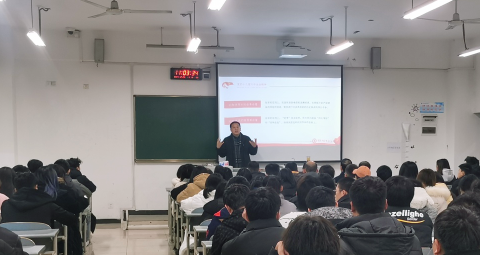 根据工作安排,12月23日中午,学校党委副书记、校长刘东燕同志到主校区B栋103教室,面向铁道与建筑学院师生宣讲党的十九届六中全会精神。