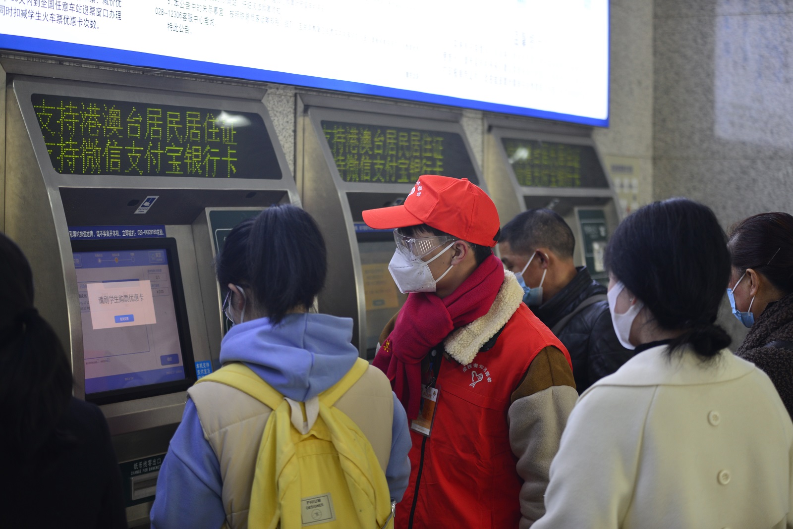 他们分布在重庆北站、西站、沙坪坝站、菜园坝站等铁路客运车站,重庆轨道交通各个站点,重庆客运段相关车队,协助工作人员,为春运期间出行旅客提供购票咨询、方位指引、防疫防控、行李搬运、重点旅客陪护、交通安全提醒、交通文明宣传等服务。