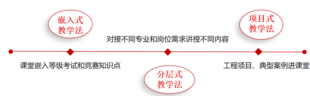改进教学方法。针对不同的专业和岗位制定相应的教学方法,实现嵌入式教学、分层式教学和项目式教学。