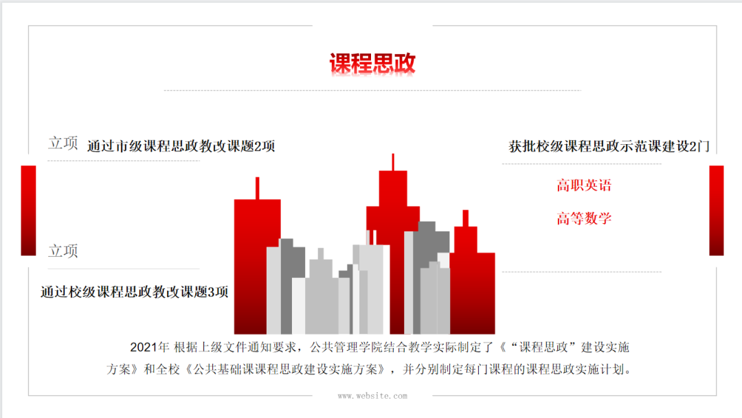 推进课程思政。组织教师结合专业特点开展课程思政和思政教育工作,组织申报课程思政相关课题,获批市级课程思政教改课题2项、校级课程思政教改课题3项、校级课程思政示范课建设2门。