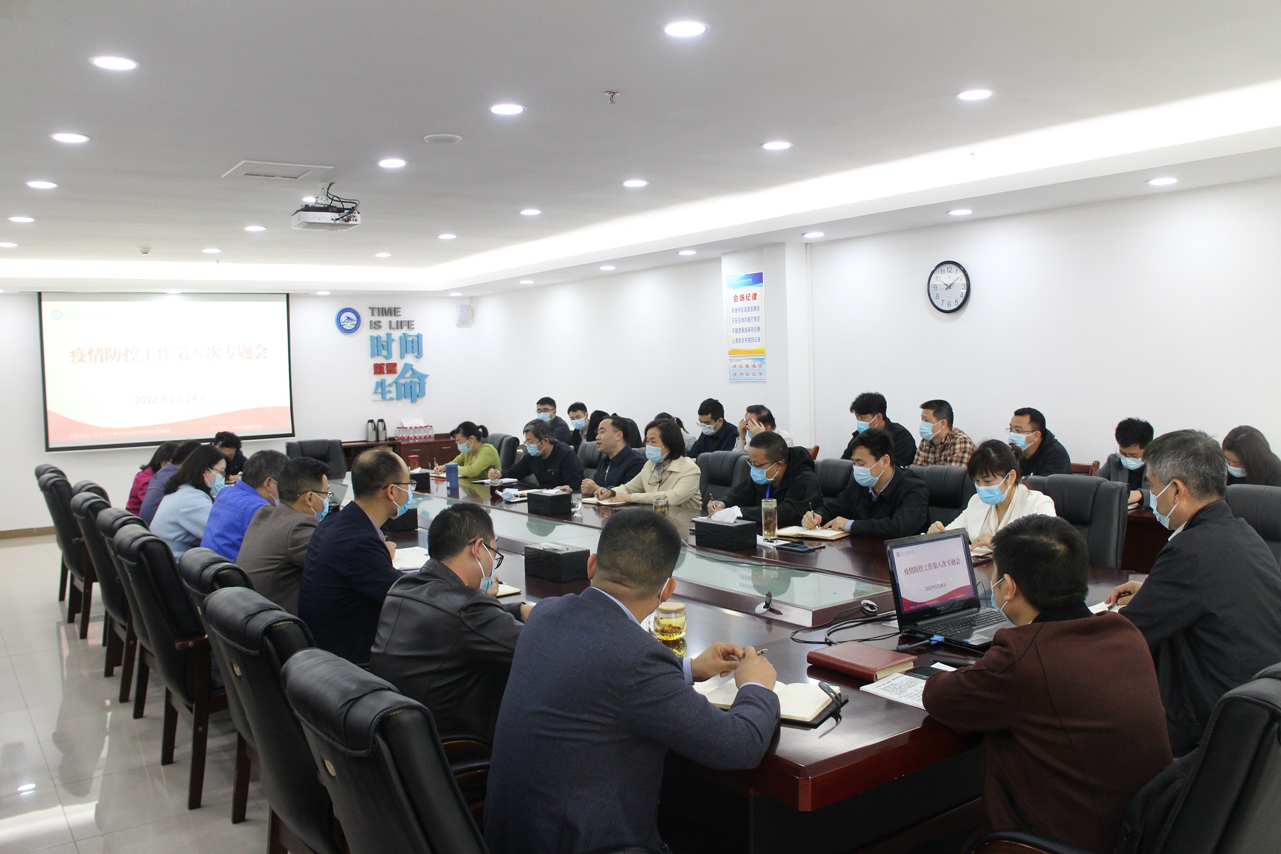 3月24日上午,重庆交通开投集团所属澳门正规电子游戏平台在科学城主校区办公楼507会议室,召开疫情防控工作第八次专题会,听取疫情防控工作调整方案汇报,围绕进一步做好校园精准防控工作进行讨论交流。