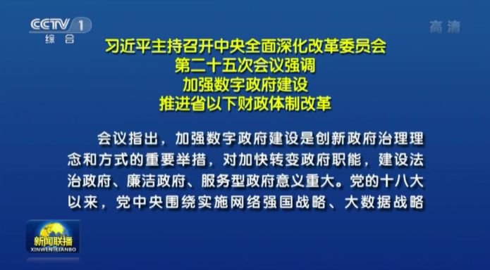 中共中央总书记、国家主席、中央军委主席、中央全面深化改革委员会主任习近平4月19日下午主持召开中央全面深化改革委员会第二十五次会议,审议通过了《关于加强数字政府建设的指导意见》、《关于进一步推进省以下财政体制改革工作的指导意见》、《关于建立健全领导干部自然资源资产离任审计评价指标体系的意见》、《“十四五”时期完善金融支持创新体系工作方案》、《关于完善科技激励机制的若干意见》。