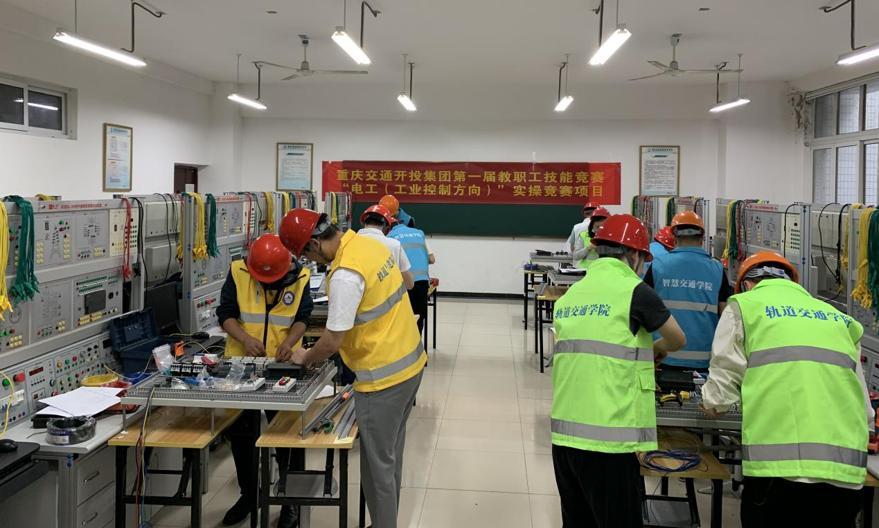 由重庆交通开投集团工会主办、学校工会承办、实训中心与周宗明劳模创新工作室协办的集团第一届教职工技能大赛电工赛项(工业控制方向),5月18日下午在学校科学城主校区教学楼D栋209实训室举行。