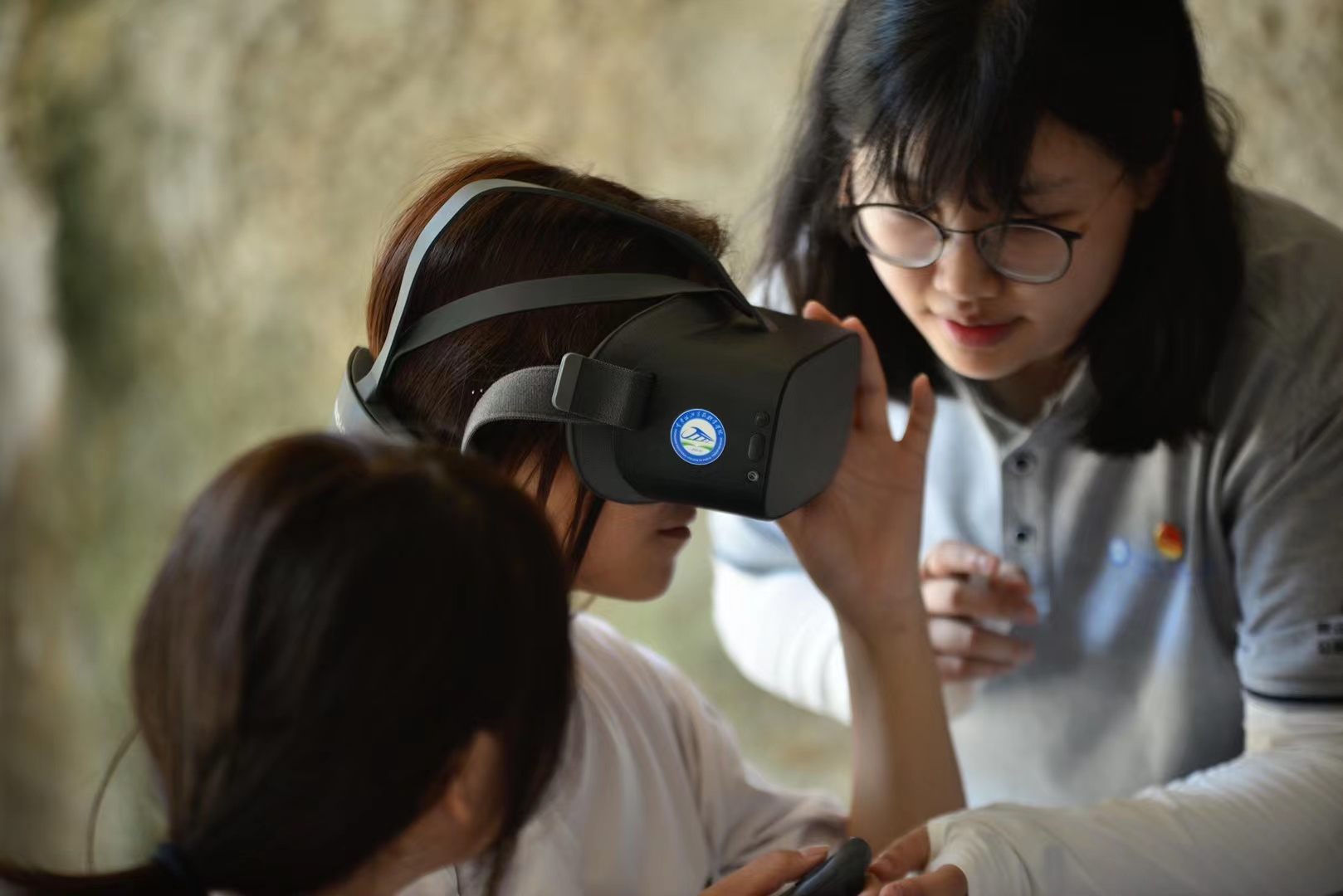 团队还在庙塆村,举行了一场别开生面的“重温红色记忆 传承红色基因”红色教育活动,利用学校引进的以“5G+VR”现代化信息技术为基础的成渝铁路虚拟仿真实验教学项目进行现场实操,结合工作人员关于新中国第一条铁路、成渝铁路的建设发展历程的现场讲述,使村民和留守儿童在实景建模逼真还原场景的虚拟世界中,充分感受成渝铁路修筑过程中军民一体、众志成城的牺牲奉献,感受交通精神的时代内涵。