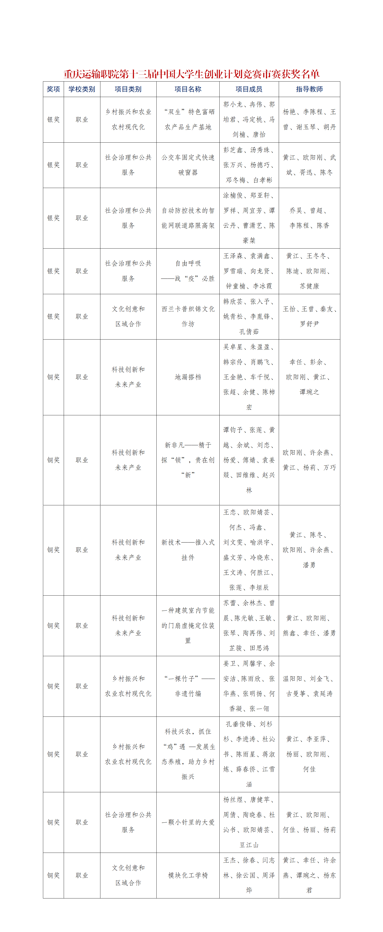 重庆运输职院斩获第十三届“挑战杯”中国大学生创业计划竞赛重庆赛区选拔赛银奖5项铜奖8项