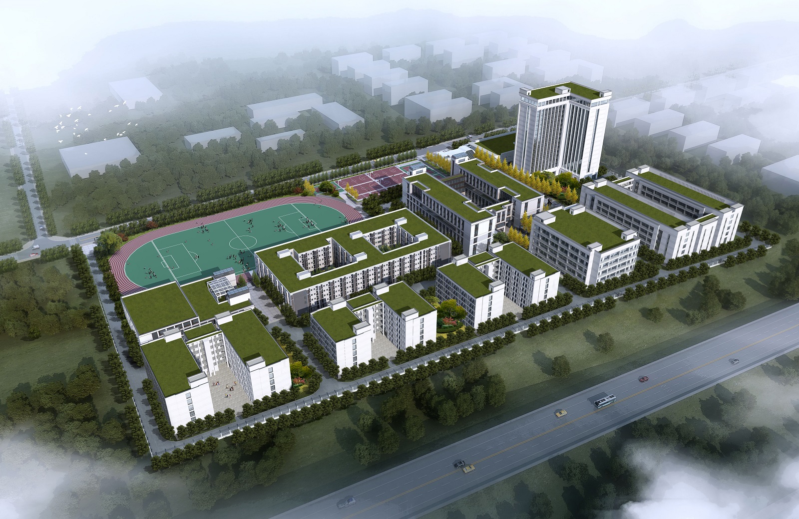 项目建设过程中,将全面贯彻创新、协调、绿色、开放、共享新发展理念,项目建成后,新校区将成为学习和生活设施配套齐全、环境美观整洁、四季缤纷如画、宜居宜学宜业的美丽校园。