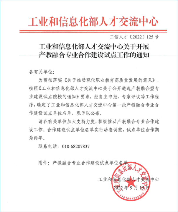 本次遴选由工业和信息化部人才交流中心于今年4月启动,旨在贯彻落实《关于推动现代职业教育高质量发展的意见》等文件要求,通过面向全国公开遴选并培育一批能发挥示范引领作用的产教融合型专业合作建设试点院校,使人才培养紧密对接产业升级和技术变革趋势。
