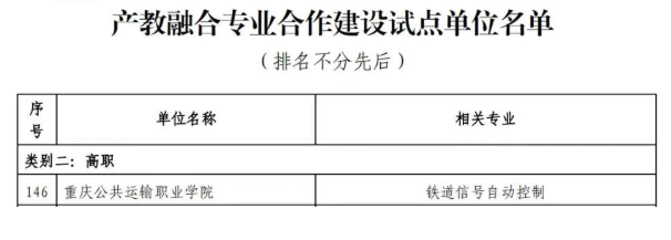 根据工业和信息化部人才交流中心近日发布的《关于开展产教融合专业合作建设试点工作的通知》,学校从全国近700院校中脱颖而出,入选工信部第一批产教融合专业合作建设试点单位,铁道信号自动控制专业入选工信部第一批产教融合专业合作建设试点专业。