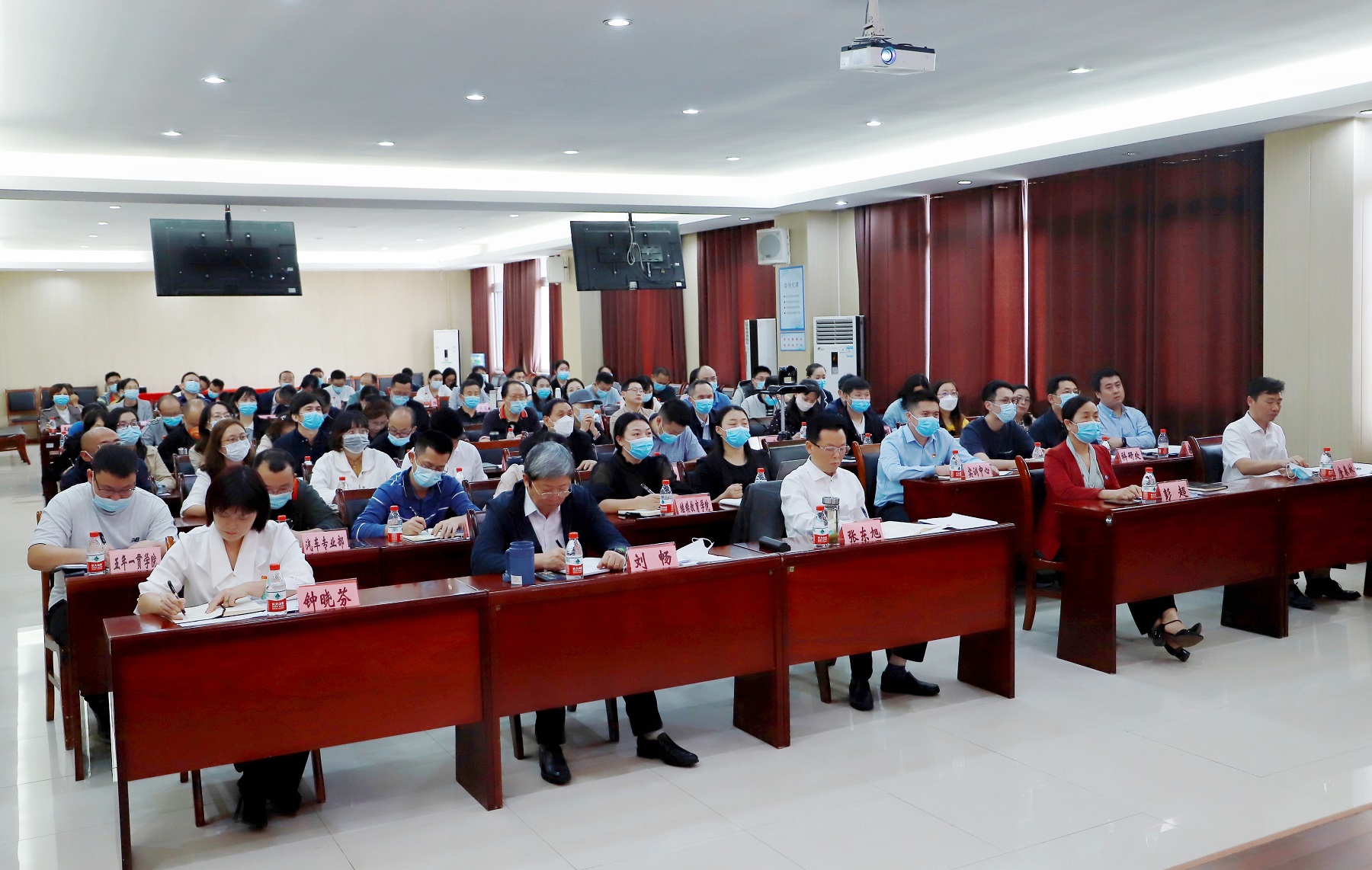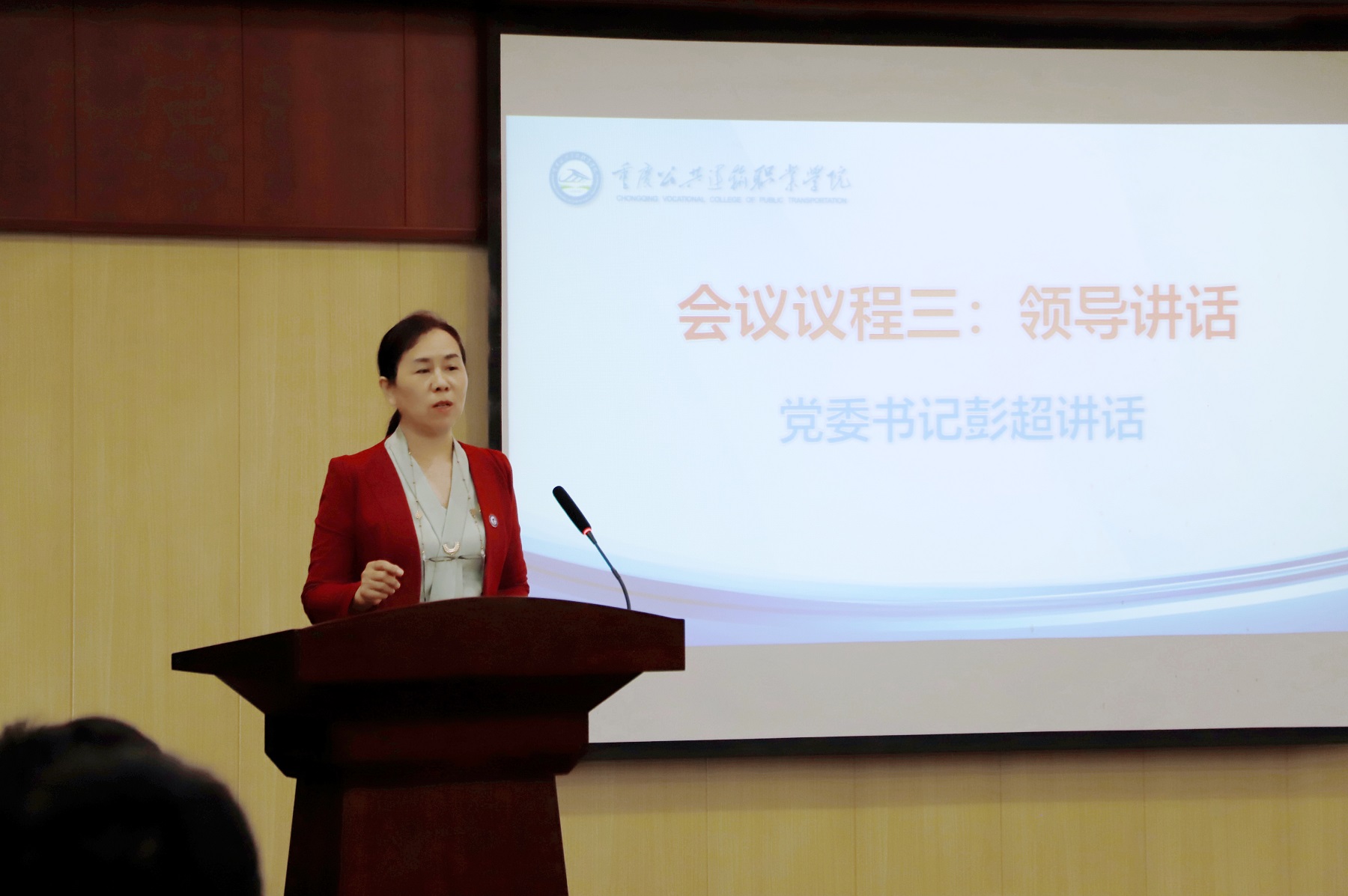 副校长刘畅、钟晓芬、唐春林,各职能部门、二级学院负责人,全体专任教师、实训中心、教务处全体人员参加会议。