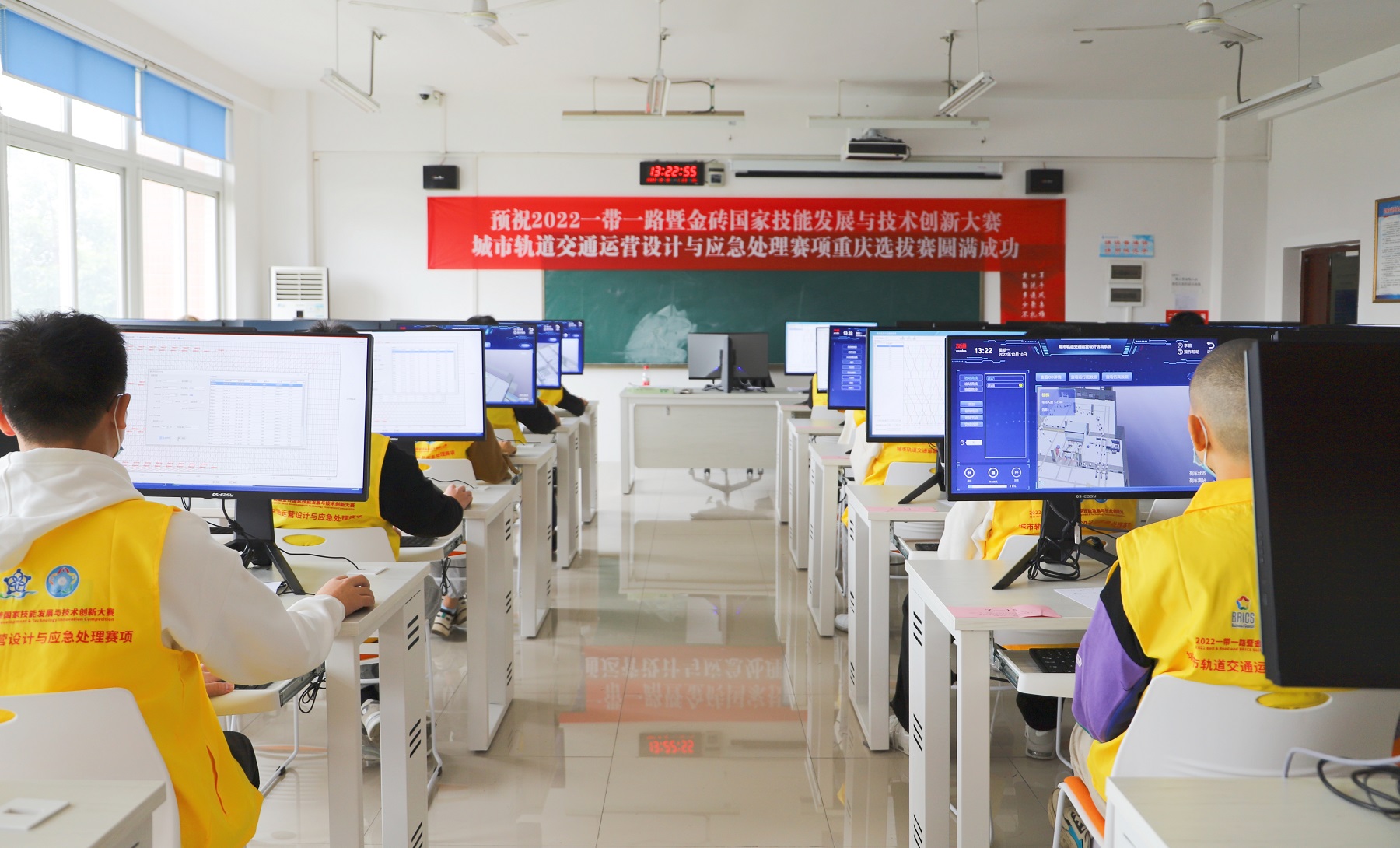 2022“一带一路”暨金砖国家技能发展与技术创新大赛城市轨道交通运营设计与应急处理赛项重庆市选拔赛,10月10日在科学城主校区举行,学校选派的选手何佳莹、陈峰包揽该赛项2个一等奖,其中何佳莹同学以总分第一名的成绩成功晋级全国决赛,蒋镇航、程翠获评优秀指导老师。
