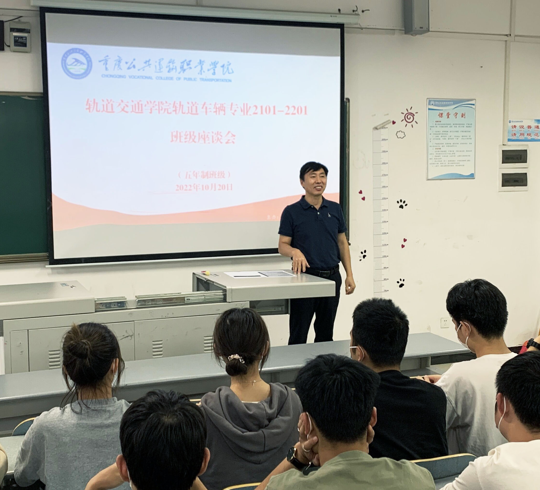 10月20日下午,轨道交通学院在科学城主校区教学楼B栋103教室召开由教师代表和五年制2021级、2022级城市轨道车辆应用技术专业同学参加的专门会议,围绕专业建设及个人职业发展路径等进行座谈交流,学院联系校领导、学校副校长唐春林到会指导。