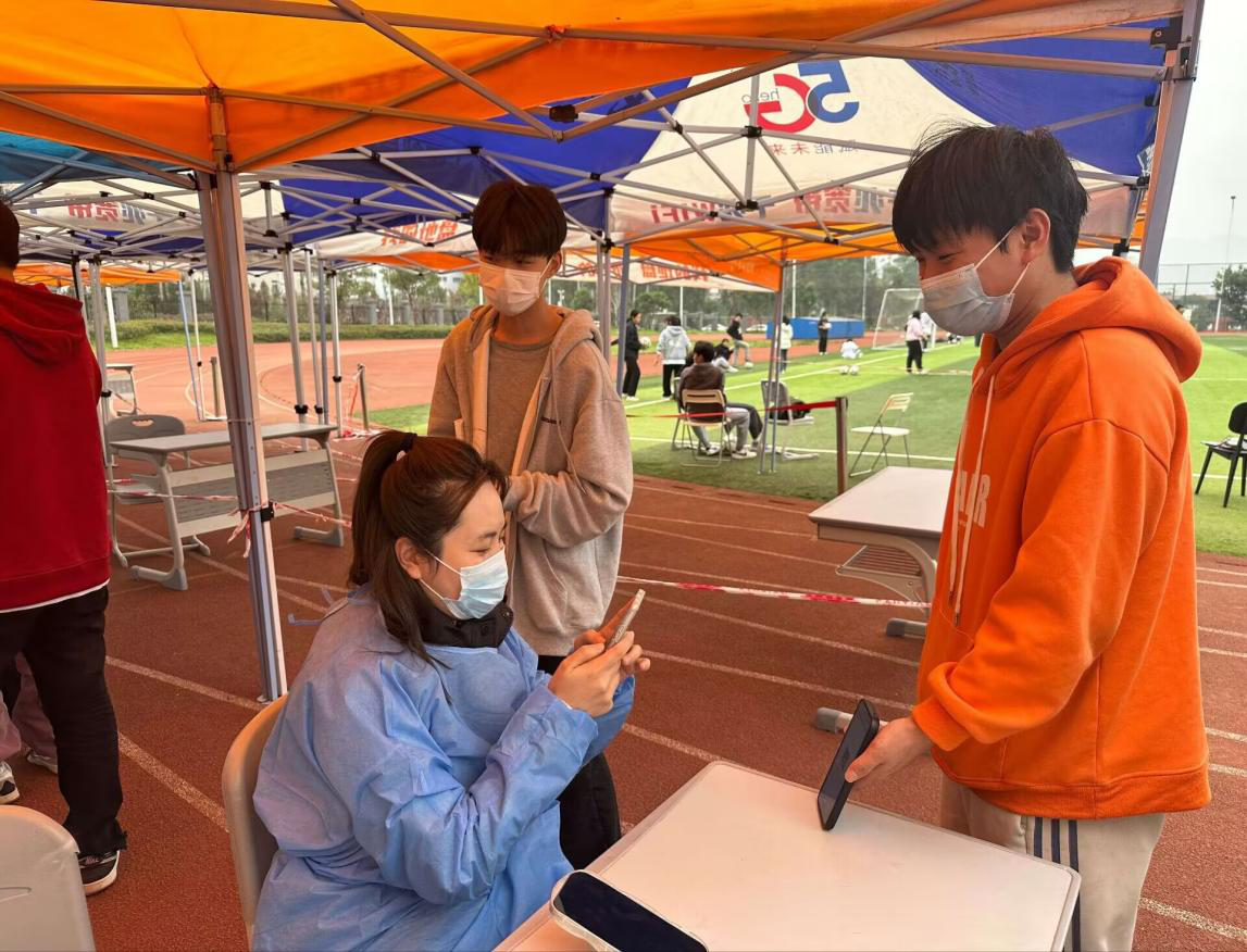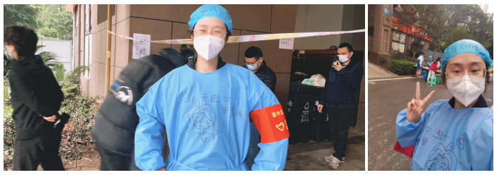 曾经在重医当过护士的罗盛颖,当即主动报名担任志愿者,由于自己还承担网课授课任务,她只能利用课余时间参与志愿服务,前后参与过核酸采集、为邻居运送物资、维护秩序等工作。
