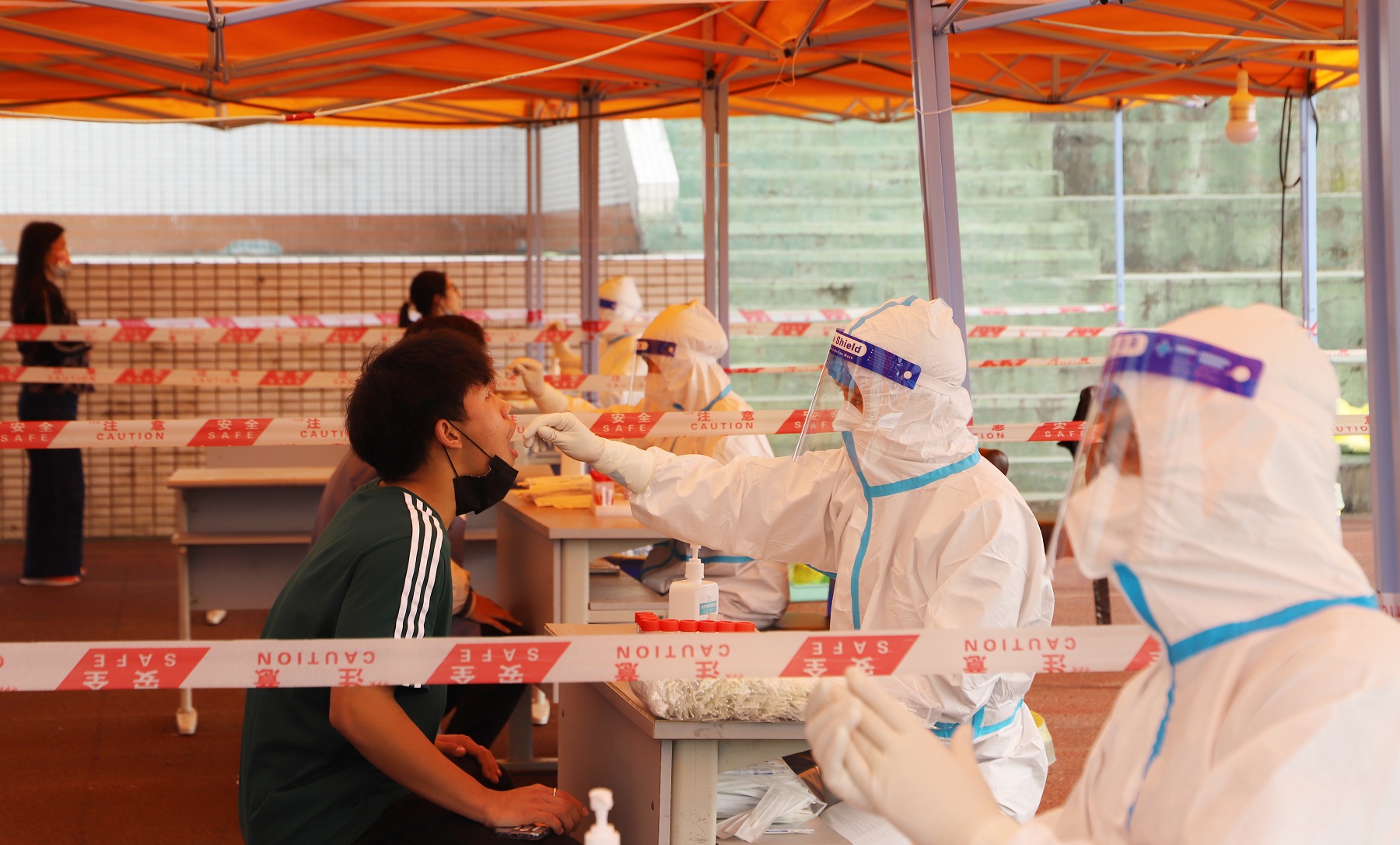 为确保安全,学校还区分教职工家属、在校学生、外委单位保障人员等不同人员类别,组织他们在不同的区域开展检测。