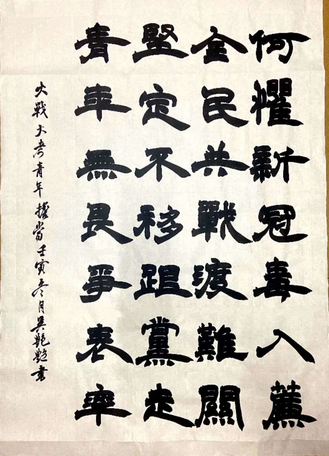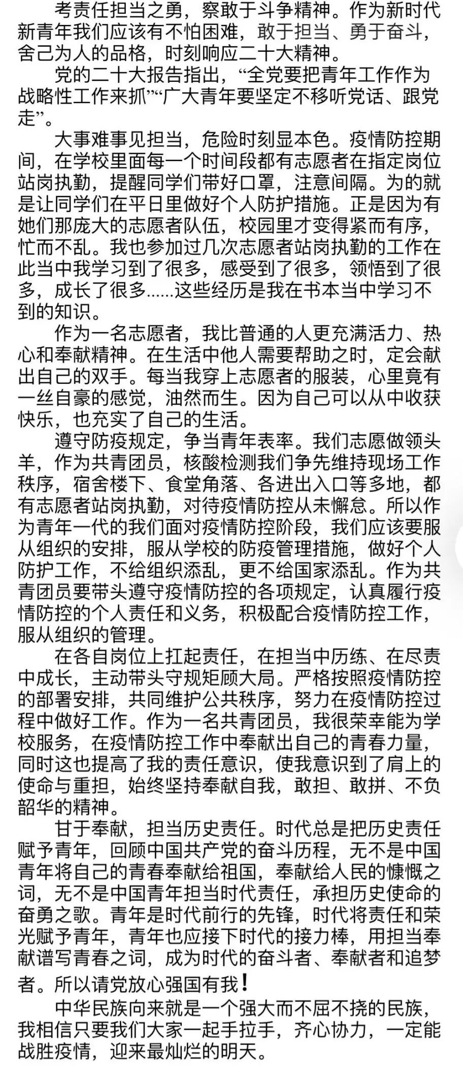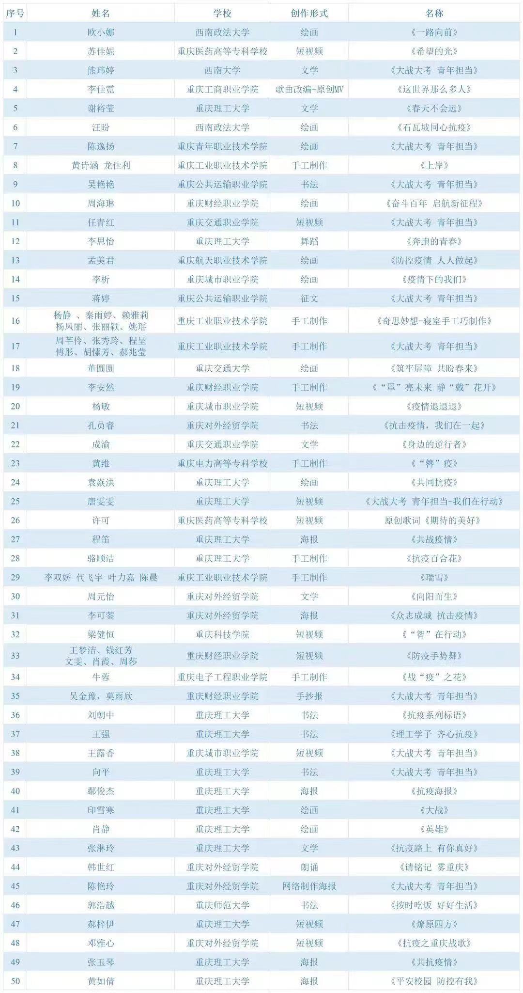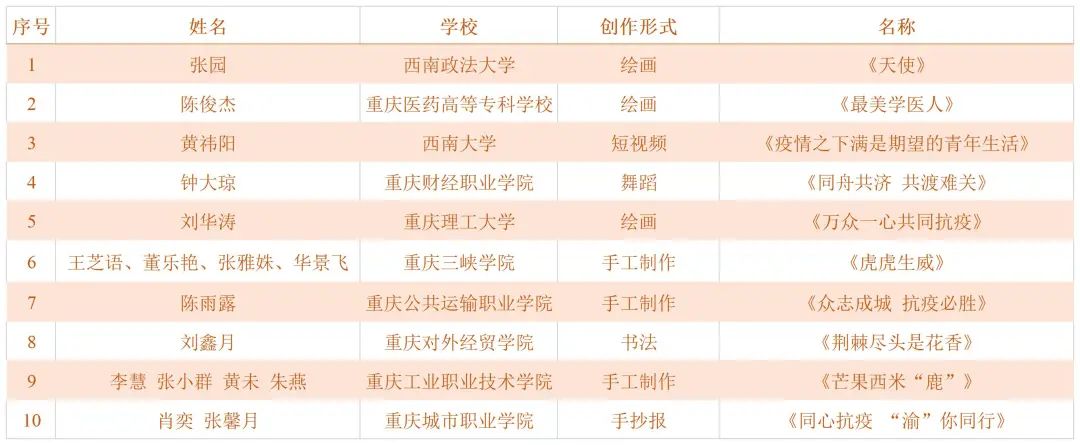 获得主题创作秀活动一等奖的,是由陈雨露同学手工制作的作品《众志成城 抗疫必胜》,获得二等奖的,是由吴艳艳同学创作的书法作品《大战大考 青年担当》、蒋婷同学创作的征文作品《大战大考 青年担当》。