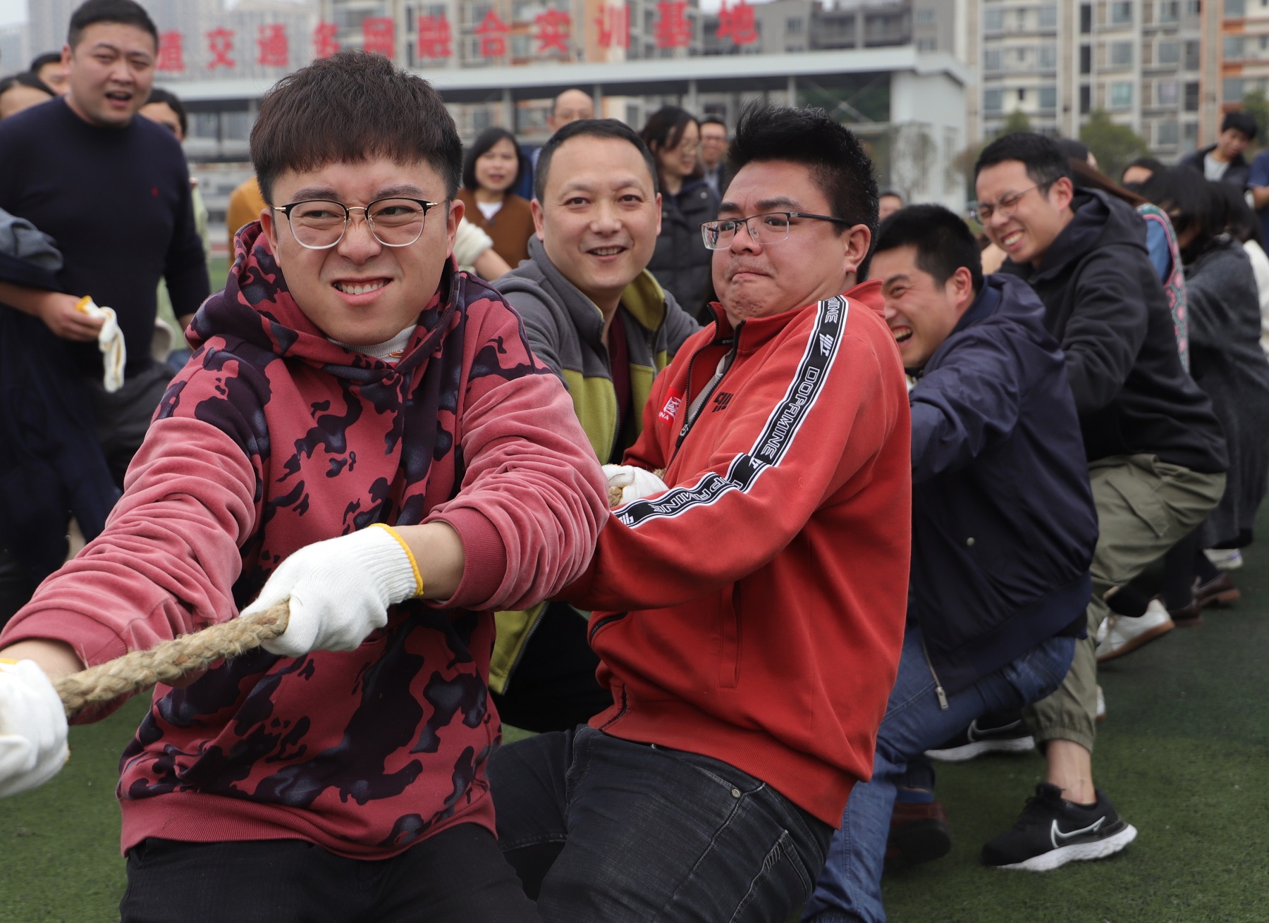 为进一步激发广大教职工爱岗敬业、团结拼搏的热情,3月15日中午,学校工会在科学城主校区操场举行教职工拔河与团体跳绳比赛。