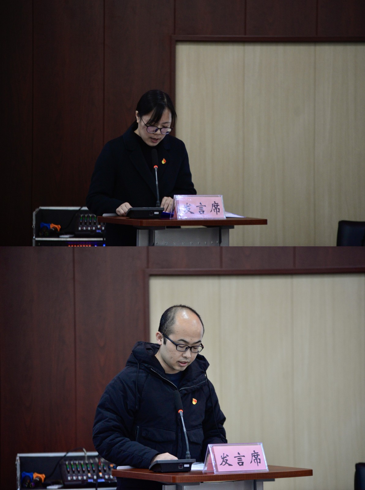 会上,基层党组织代表,智慧交通与铁建联合党总支书记郭昌盛和轨道交通学院学生党支部书记钟馨怡,围绕推进“一融双高”建设主题,分享2023年党建工作思路和重点工作计划。