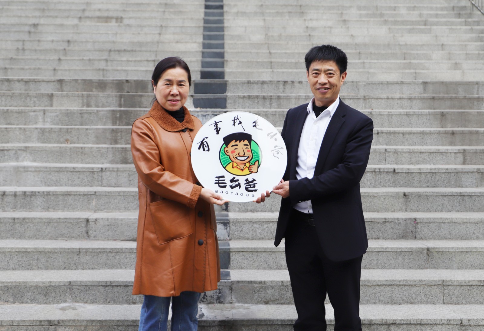 4月7日,云阳县清水乡庙塆村村支书毛海生与交通开投轨道集团驻村第一书记邓楠专程来到学校科学城主校区,向学校赠送锦旗,感谢学校近年对庙塆村乡村振兴工作的大力支持,学校党委书记彭超,纪委书记、工会主席杨睿接受锦旗,并代表学校向毛海生赠送学校师生为他的“毛幺爸工作室”设计的形象LOGO“有事就找毛幺爸”。