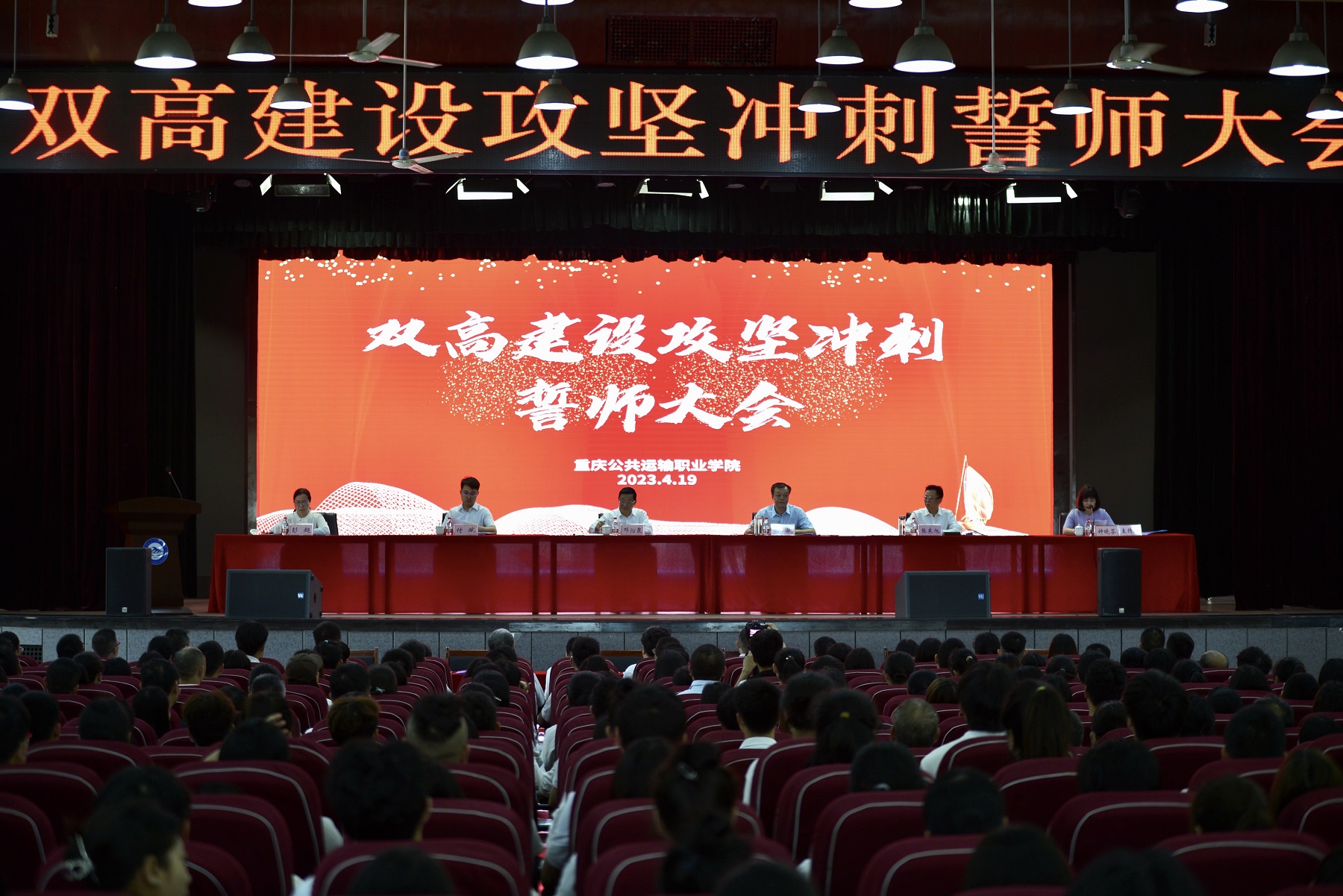 为高质量推进学校“双高计划”项目建设,4月19日下午,学校在科学城主校区学术报告厅,召开“双高计划”项目建设攻坚冲刺誓师大会,重庆市教委原一级巡视员邓沁泉,重庆交通开投集团党委委员、监事会主席姚斌,市教委职成教处干部付斌到会指导。