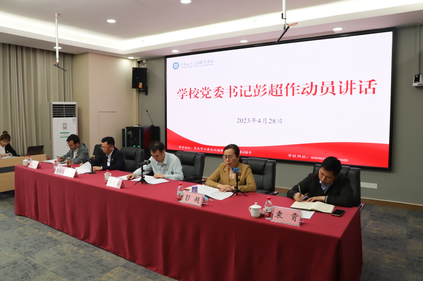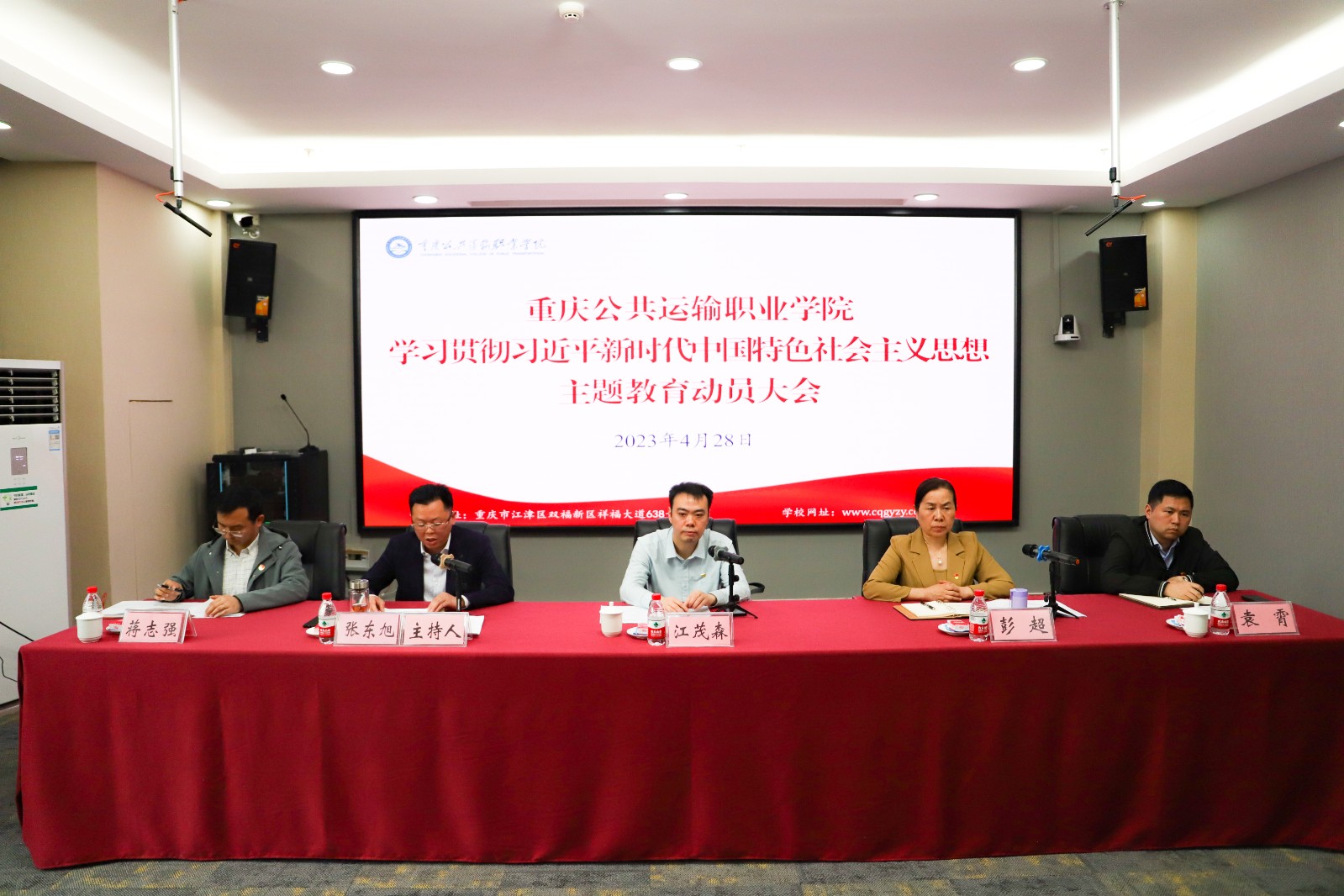 4月28日上午,学校在科学城主校区办公楼三楼会议室,召开学习贯彻习近平新时代中国特色社会主义思想主题教育动员大会。学校党委书记彭超作动员讲话,市委教育工委巡回指导四组副组长江茂森到会指导并讲话。会议由学校党委副书记、董事长张东旭主持。