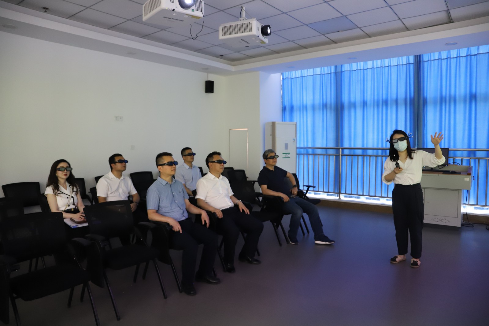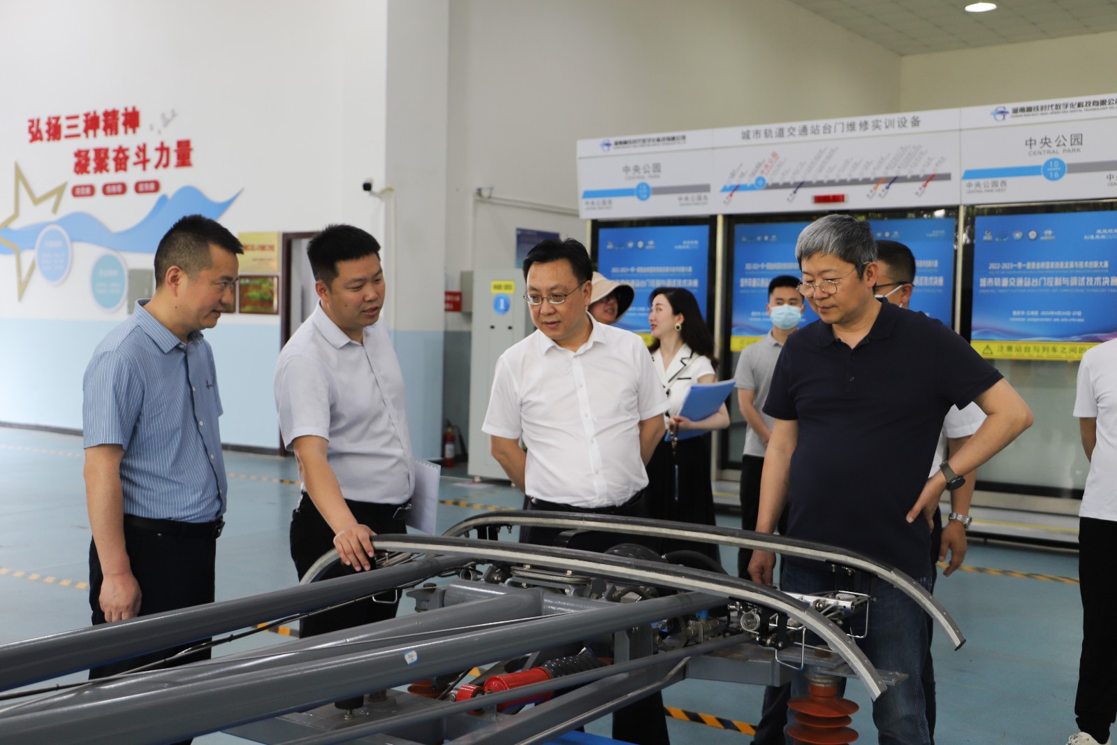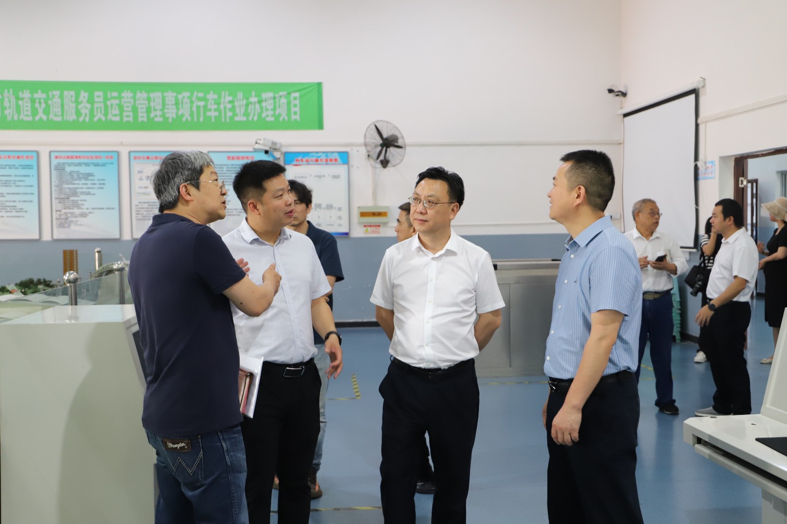 在校期间,盛勇一行在学校领导的陪同下,到全国城轨与高铁技术共享实训基地及虚拟仿真实训中心实地参观。