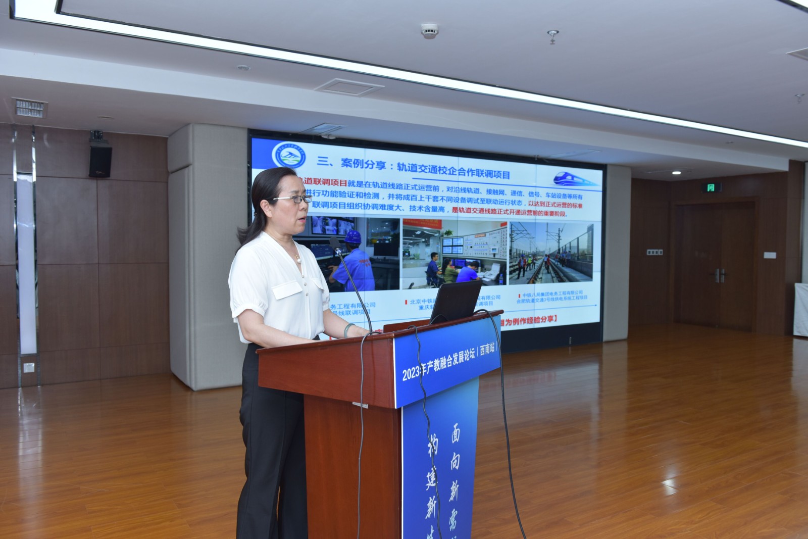 在会议的平行论坛环节,彭超以“校企双向赋能 产教双链融合—重庆运输职院助力企业提质增效案例”为题,在介绍学校概况、产教融合特色的基础上,以重庆轨道交通五号线联调项目为具体案例,详细介绍目背景、项目经验和项目成效,全面阐述“校企全程合作,创新现场‘学徒制’人才培养新模式”“教师深度参与,有效提升项目的管理与科研水平”“深度产教融合,实现校企共赢”等产教融合办学经验。