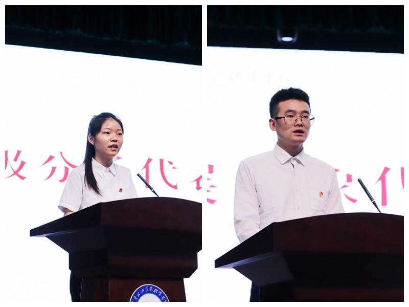 智慧交通学院电气自动化2201班黄月同学、轨道交通学院轨道车辆2101班张青鹏同学,分别代表本期入党积极分子、重点发展对象培训班学员进行表态发言。
