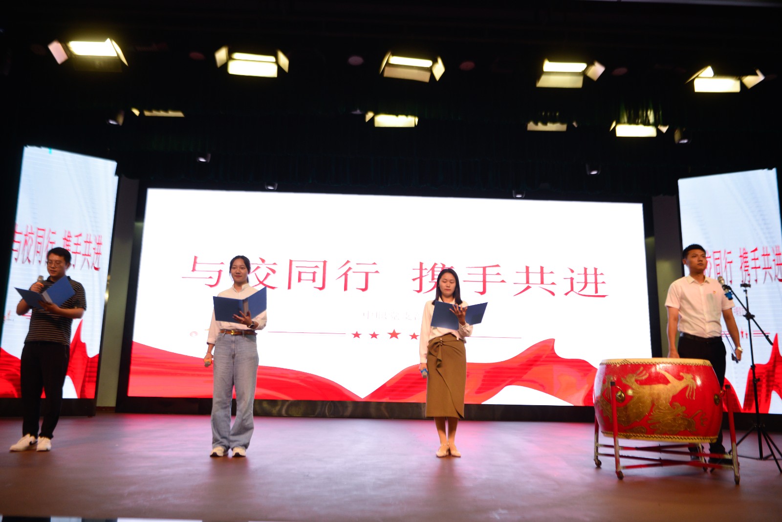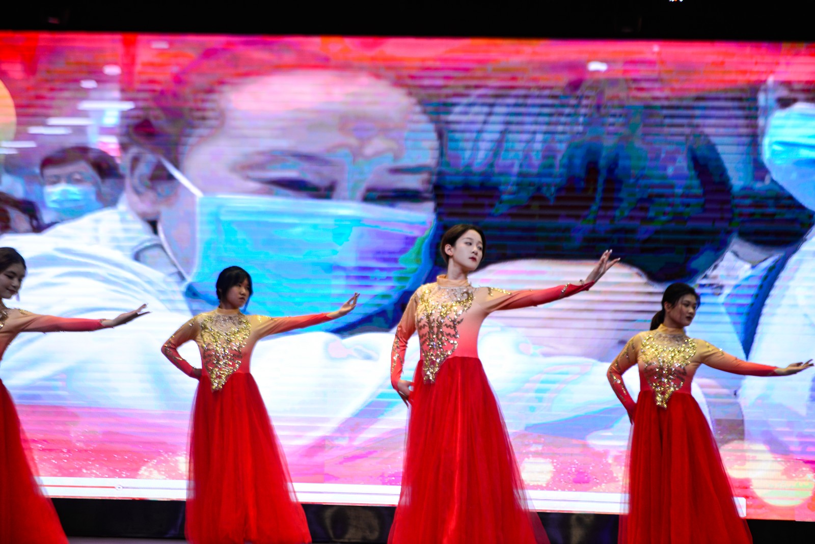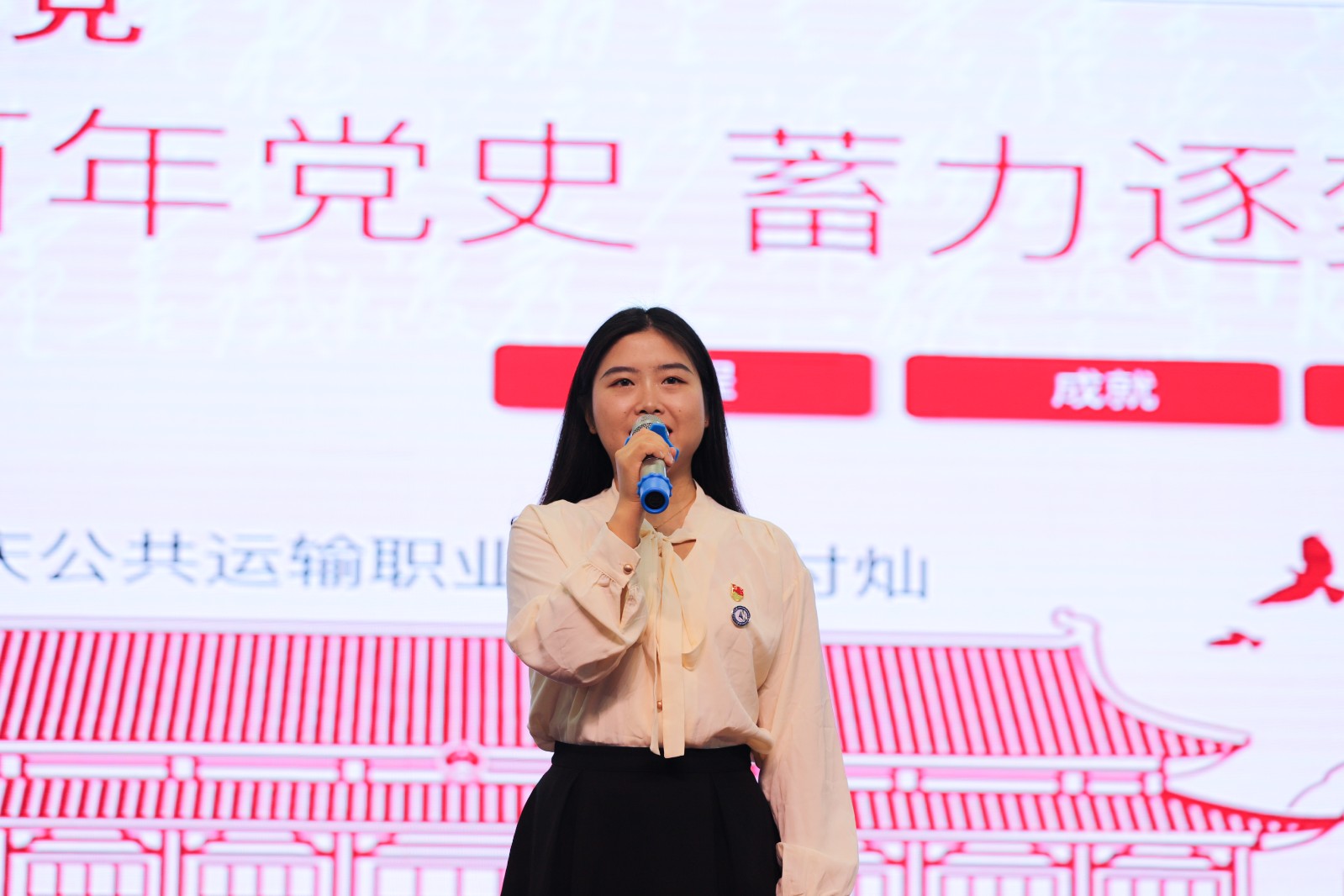 比赛在舞蹈《党旗飘扬的方向》中拉开帷幕。共有来自学校各基层党总支和直属党支部的7支队伍参加比赛。