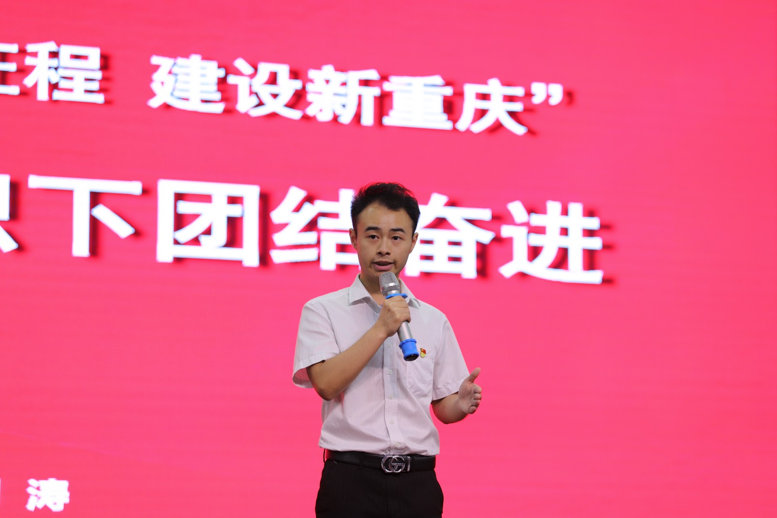 比赛过程中,各参赛队选手紧紧围绕“学习新思想、奋进新征程、建设新重庆”这一主题,结合自身学习工作经历、岗位实际和身边榜样,以饱满的热情、高昂的气势,用深入浅出、富有生命力的语言,详细阐释习近平新时代中国特色社会主义思想的深刻内涵和重大意义,生动讲述身边感人的故事,为现场观众呈现了一场场精彩纷呈的思政大课。