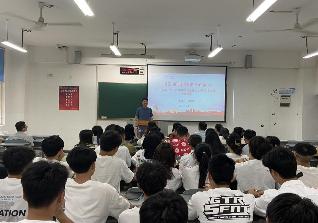 根据学校主题教育工作安排,6月14日下午,学校党委委员、副校长唐春林在科学城主校区教学楼B栋101教室,为轨道交通学院讲授主题教育专题党课。