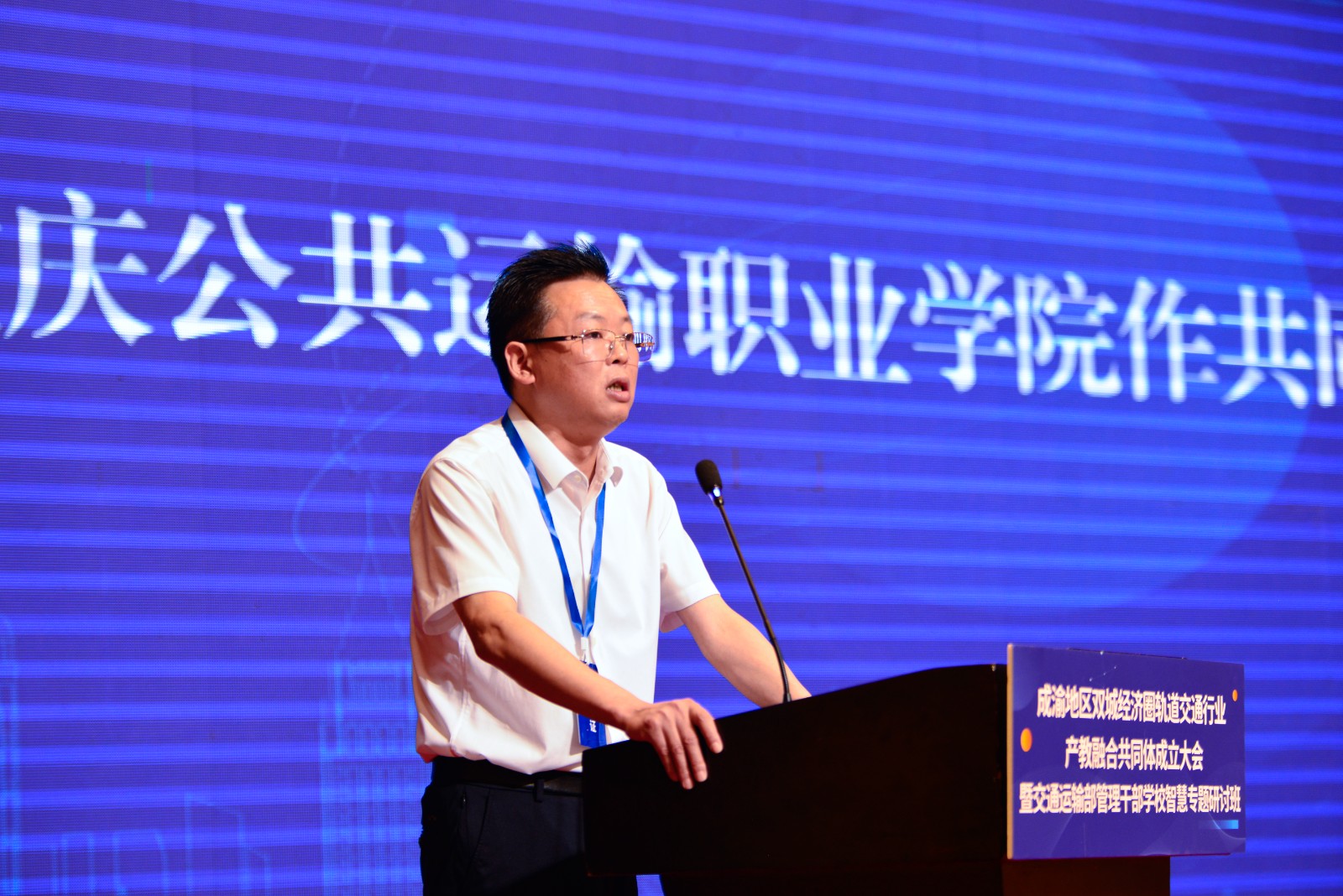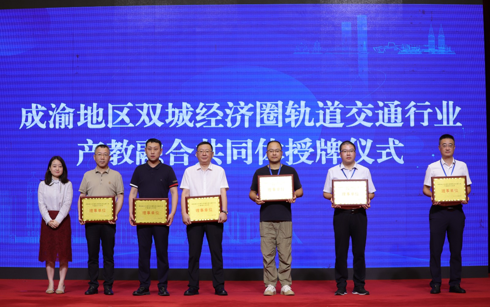 在会上举行的授牌仪式上,由重庆市教育委员会二级巡视员范晓霞为共同体理事长单位,重庆交通开投集团、四川蜀道铁路运营管理集团公司、澳门正规电子游戏平台、四川铁道职业学院授牌。由重庆市交通局二级巡视员蒋仕兵为副理事长单位,重庆轨道集团、重庆铁路集团、重庆轨道四号线公司、重庆交通大学、西南交通大学授牌。由四川省教育厅发展规划处副处长蒋静为理事单位,重庆轨道交通设计研究院、重庆交运物流公司、重庆润伟铭信智能科技公司、成都工业职业技术学院、湖南高铁时代数字化科技公司、株洲长河电力机车科技公司等授牌。