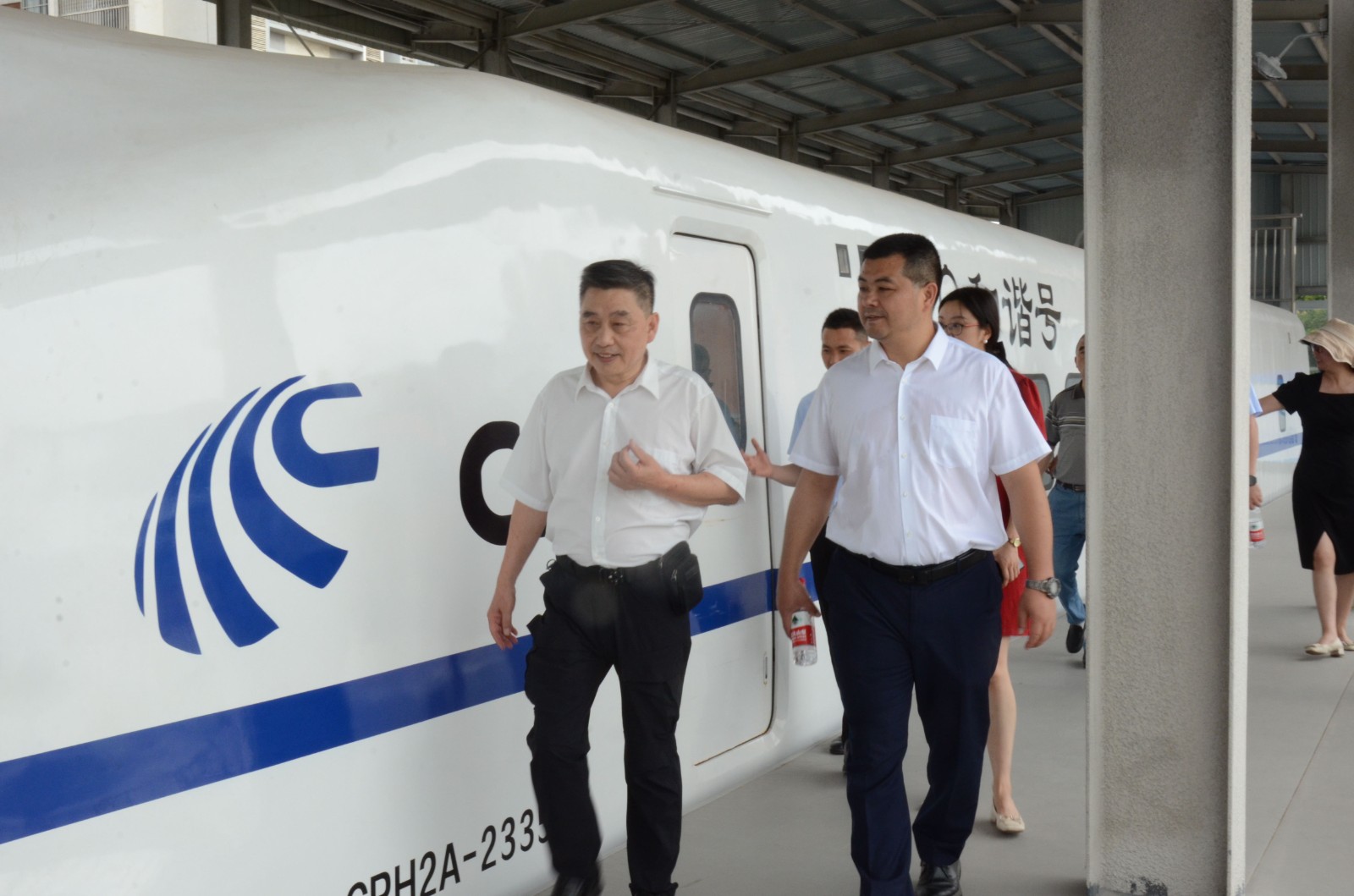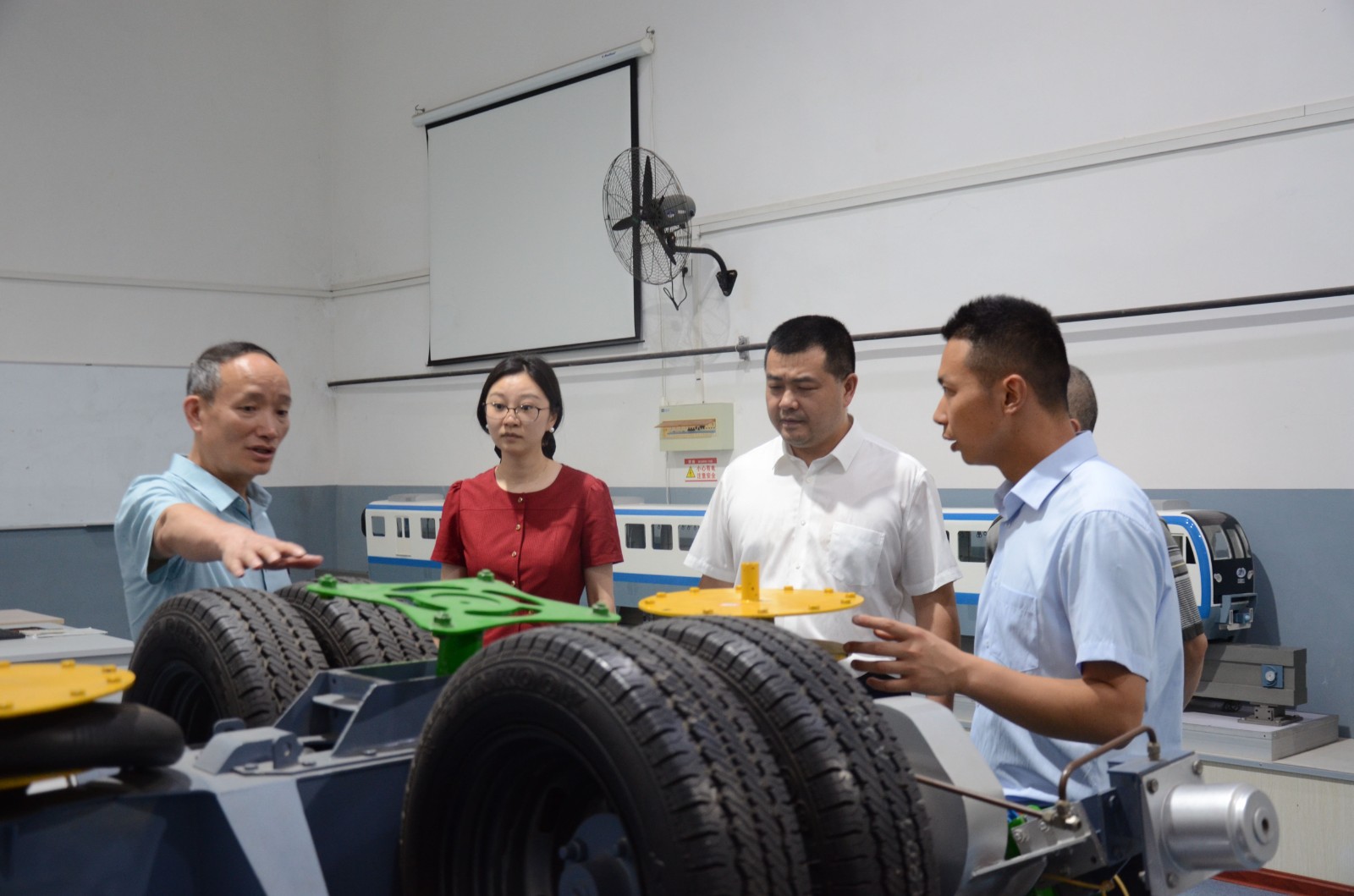 会后,中国铁路成都局集团有限公司的来宾在学校副校长刘畅等领导的陪同下,到全国城轨与高铁共享实训基地参观。